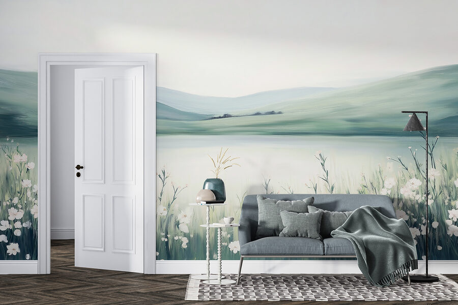 Imagine acordar todas as manhãs e sentir que está a entrar num prado sereno – com este mural, é exatamente isso que acontece! O “Papel de parede w01387v1” é uma peça de sonho que traz a natureza diretamente para a sua casa. É como ter a sua própria fatia pessoal de uma paisagem exuberante e calma. Os verdes pastel suaves e as flores suaves iluminam sem esforço qualquer espaço, fazendo-o sentir-se aberto e arejado.