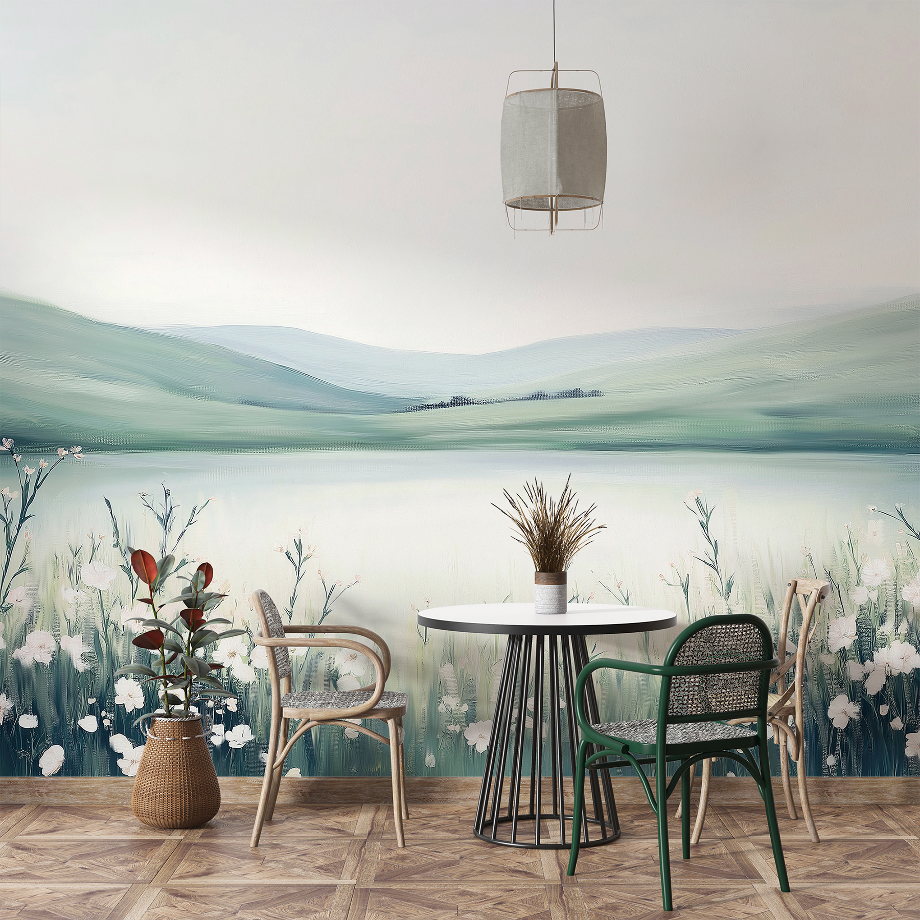 Perfeito para aqueles momentos em que só precisa de respirar e escapar, transforma as suas paredes num horizonte extenso. Há uma certa tranquilidade quando se olha para ele – quase se consegue ouvir o farfalhar das flores silvestres ao sabor da brisa. Quer se trate de um recanto de leitura acolhedor ou de um retiro de quarto fresco, este mural cria uma vibração tranquila que é difícil de resistir. Adicione uma chávena de chá e um bom livro, e terá o seu próprio pequeno santuário!