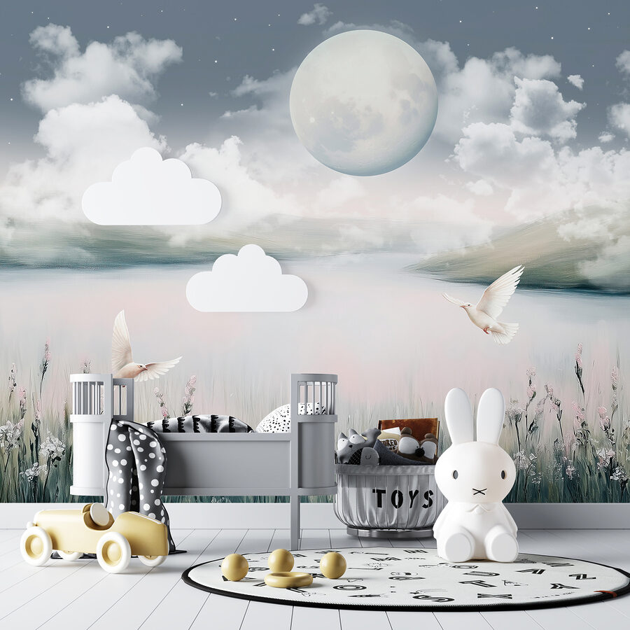 Sempre quis trazer uma sensação de calma e maravilha para a sua casa? Este “Fotomurais w01389” pode ser exatamente o que precisa. Imagine isto – uma cena de aguarela de sonho onde a lua se senta suavemente sobre um lago enevoado, rodeada por nuvens macias e fofas. É como entrar num conto de fadas sempre que entra na sala.