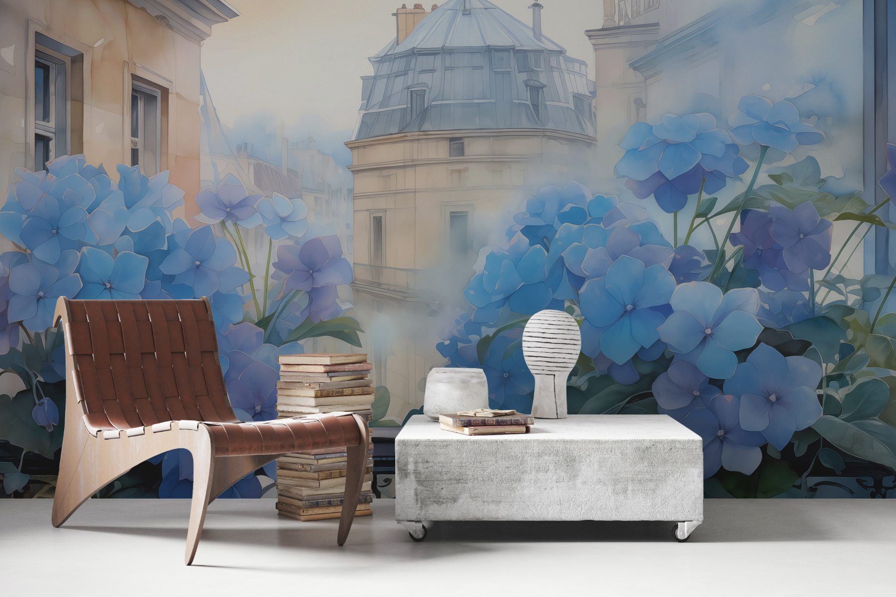 Imagine isto – uma manhã preguiçosa de domingo com a luz do sol a escorrer pelas suas janelas, e boom, lá está este mural de parede! “Fotomurais w01439” traz uma mistura ideal de arquitetura e natureza, dando ao seu espaço uma vista de janela acolhedora que é difícil de bater. Uma explosão de hortênsias azuis em cascata sobre uma varanda encantadora com uma paisagem urbana sussurrante ao fundo… é como um bilhete instantâneo para a calma.