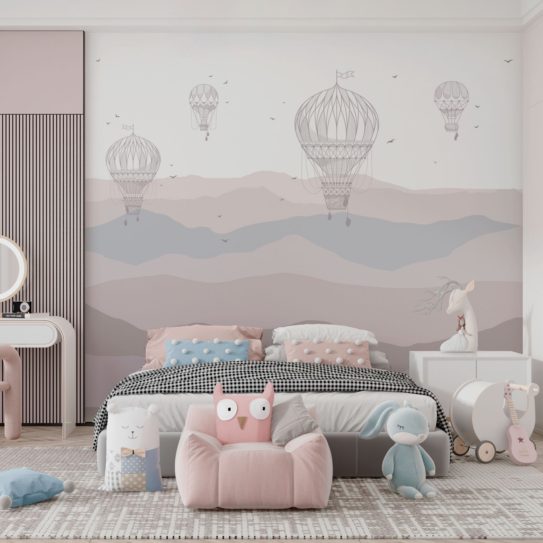 Os gradientes suaves das montanhas que se desvanecem ao longe proporcionam um pano de fundo calmante para a hora do conto ou para qualquer momento de reflexão tranquila. Traz um pouco do ar livre para o interior – sem a preocupação com o tempo! Quase se espera ouvir o ruído suave dos balões a passar e o chilrear ténue dos pássaros no horizonte… Encantador, não é?