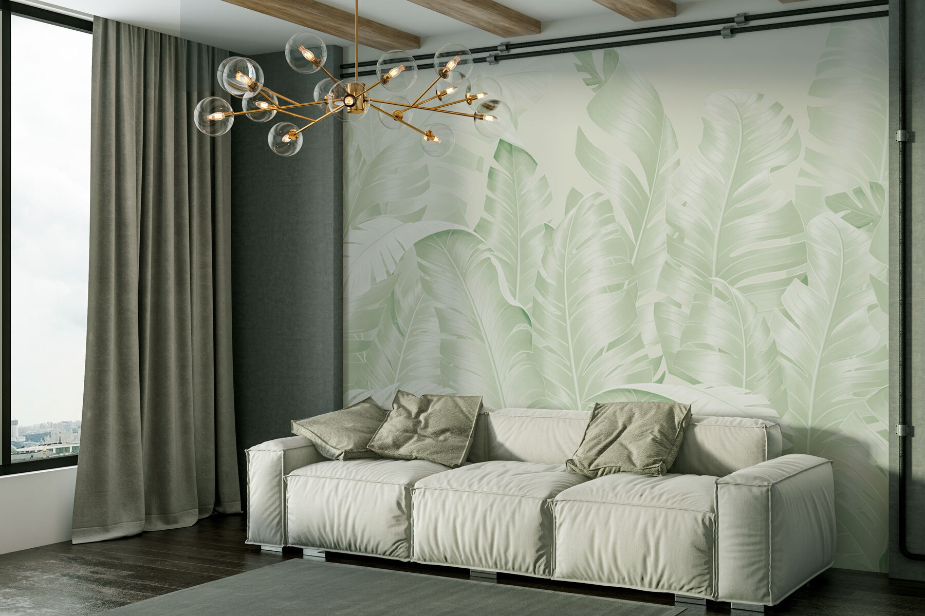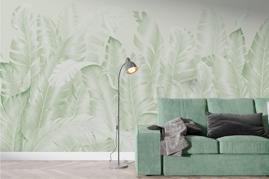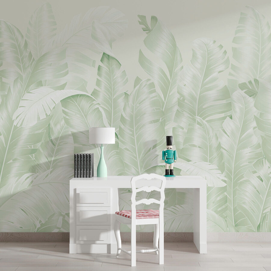 Transforme o seu espaço num oásis sereno com este encantador mural de parede com um exuberante grupo de folhas sobre um fundo branco suave. Imagine-se a entrar num refúgio tropical sempre que entra no quarto. Os verdes e brancos suaves criam uma atmosfera calmante, perfeita para descontrair após um longo dia. É como ter um pedaço de natureza nas paredes, tornando a divisão mais ampla e convidativa. Os amigos vão perguntar-se se tem um jardim secreto escondido. Além disso, combina lindamente com qualquer estilo de decoração. Imagine-se a beber café aqui, rodeado pela tranquilidade da natureza – pura felicidade!