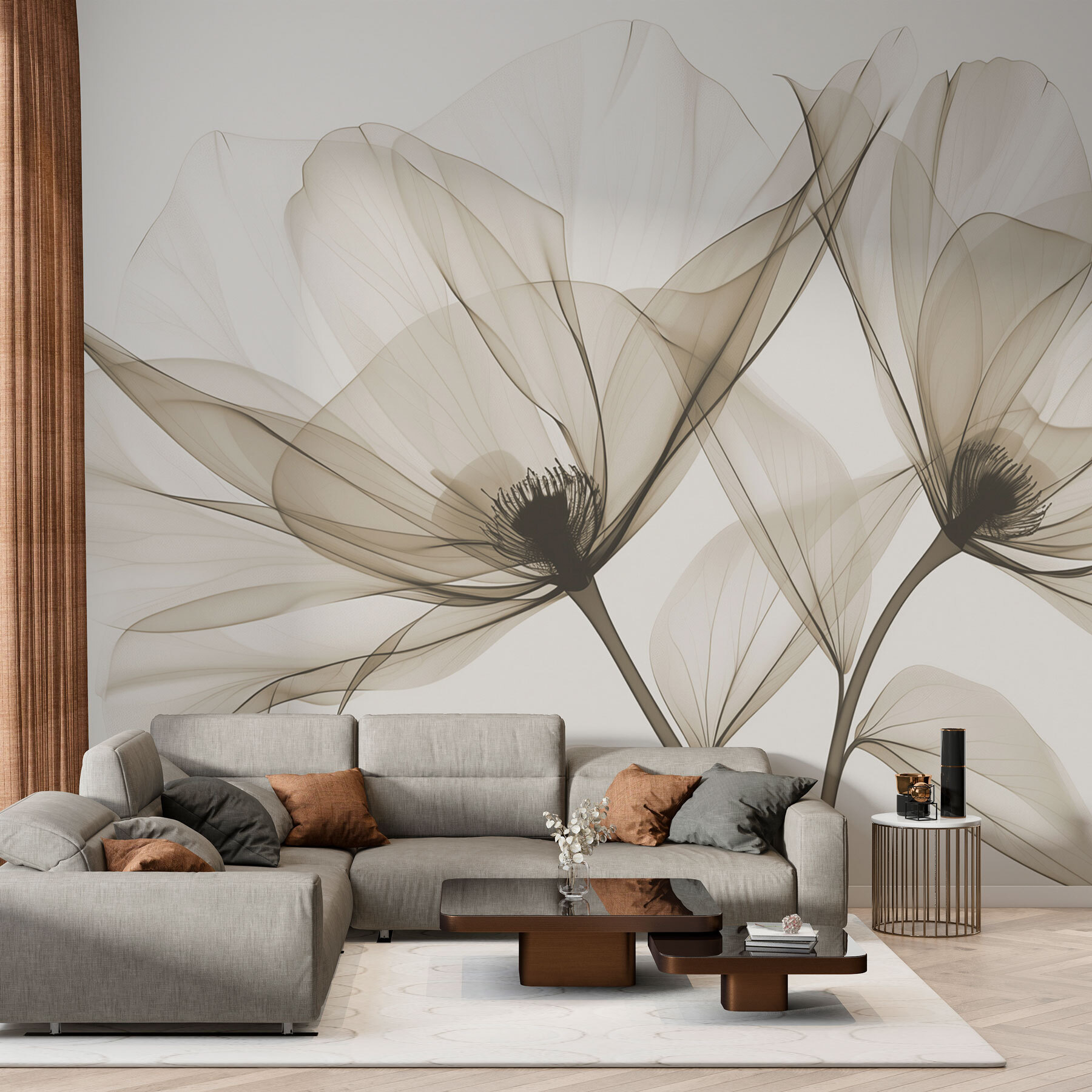 Transforme uma parede simples num oásis tranquilo com este deslumbrante mural de parede com elegantes flores em tons de sépia. Imagine-se a entrar num espaço acolhedor que sussurra conforto e sofisticação. As linhas suaves e fluidas das flores parecem dançar, convidando a pensar nos dias de primavera e na luz quente do sol a filtrar-se através das folhas. É como trazer um pouco da natureza para dentro de casa sem o regador. Quer se trate de uma sala de estar, de um quarto ou mesmo de um recanto de leitura tranquilo, estas flores suaves criam um ambiente sereno que é perfeito para se enrolar com um bom livro – ou simplesmente absorver a beleza.