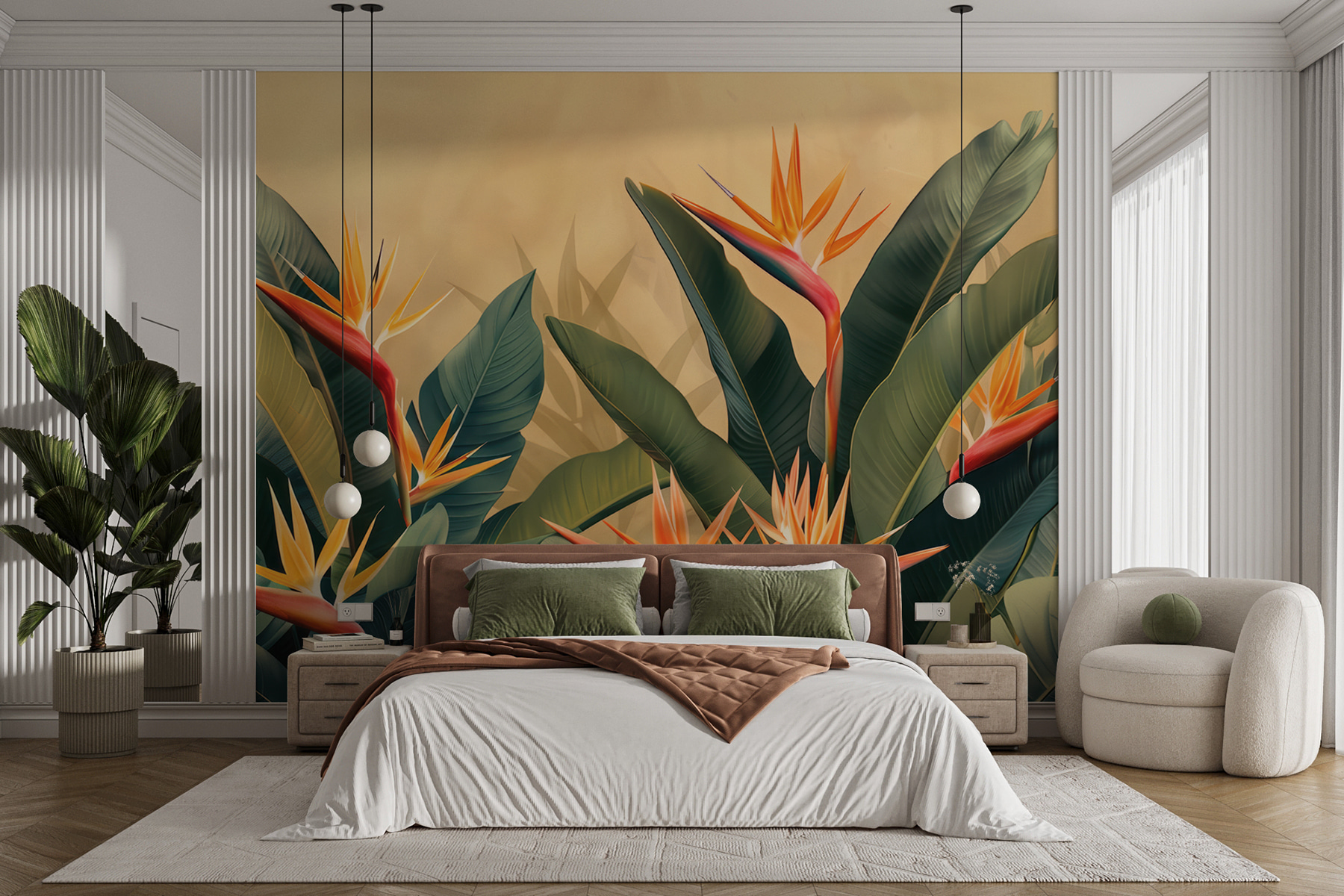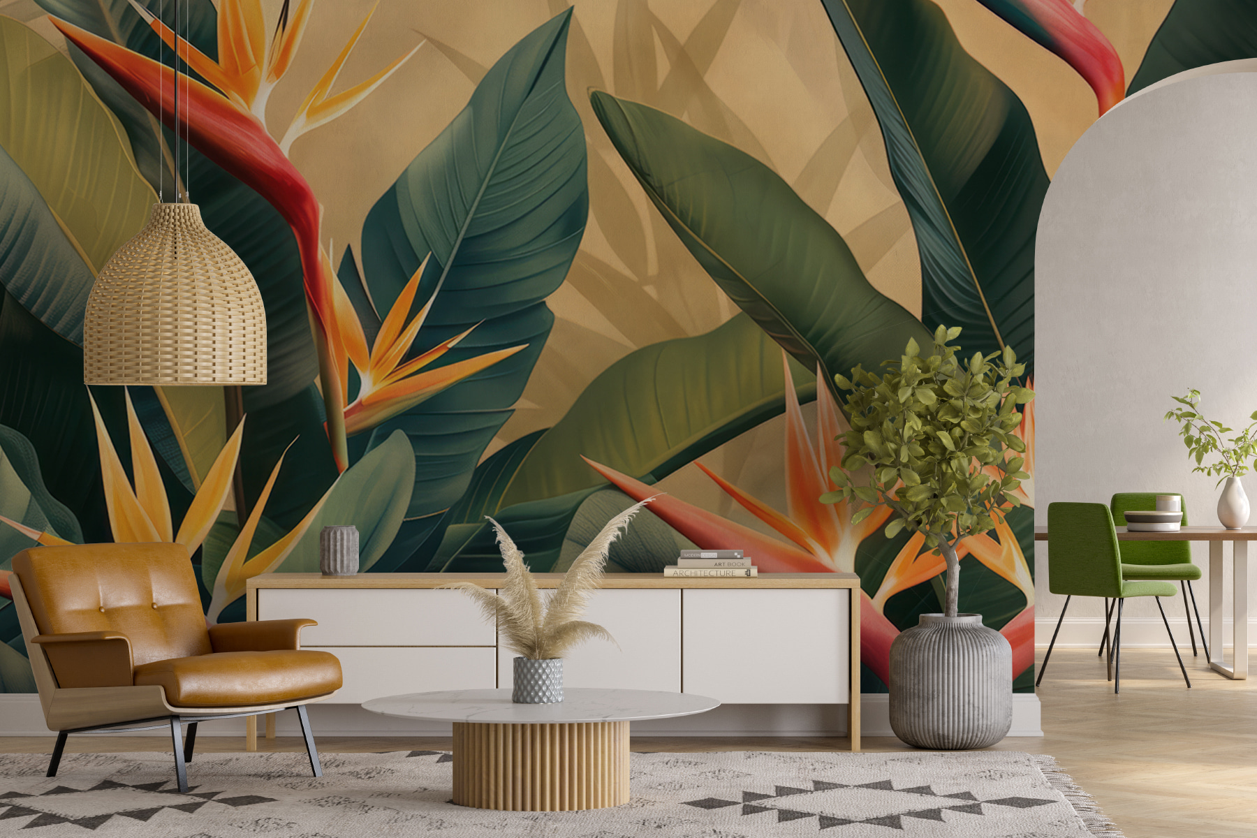 Transforme qualquer divisão num paraíso tropical com este deslumbrante mural de parede com vibrantes plantas Bird of Paradise. Os verdes ricos e as laranjas ardentes criam um cenário animado, melhorando instantaneamente o ambiente. Imagine entrar na sua sala de estar e sentir-se como se estivesse numa escapadela tropical banhada pelo sol. É como trazer um pedaço da natureza para o interior – perfeito para aquelas tardes aconchegantes com um livro ou talvez um cocktail atrevido na mão. Além disso, é um ótimo início de conversa. Os convidados vão perguntar de onde veio esse fabuloso mural, e você pode sorrir e dizer que é o segredo da sua fuga chique!