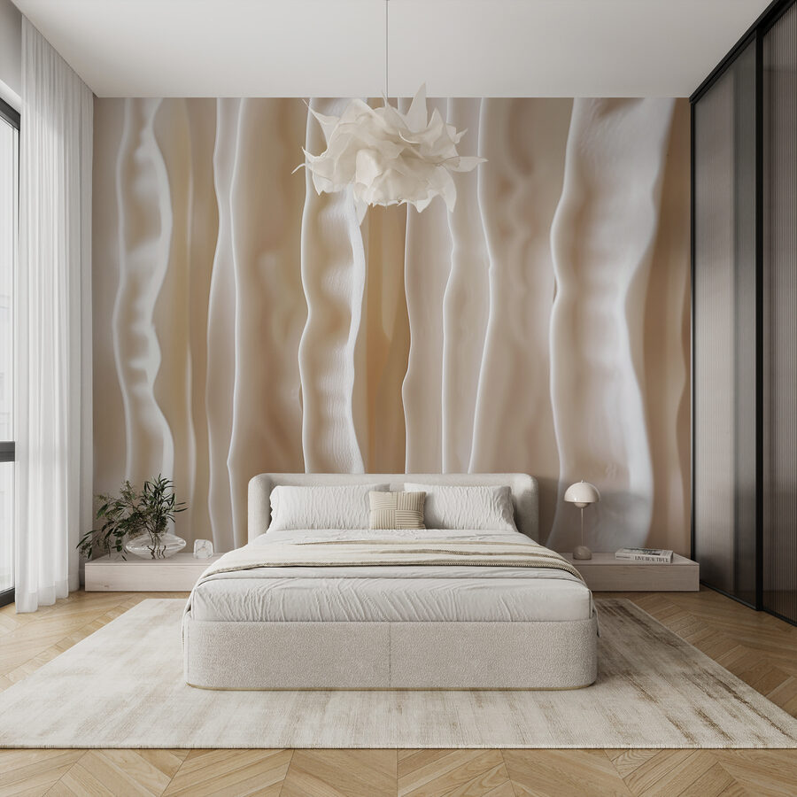 Imagine entrar numa sala onde as paredes parecem sussurrar “relaxa”. O mural “Creamy Waves” não é apenas um revestimento de parede; é um convite para sonhar acordado. Com as suas texturas suaves e fluidas, parece que está a flutuar através de um mar fofo de nuvens – ou talvez de chantilly? Perfeito para dar um toque de calma e elegância, é como um abraço visual para o seu espaço. Imagine-se a bebericar o café da manhã, rodeado por este cenário sereno – de repente, as segundas-feiras podem não parecer assim tão más.