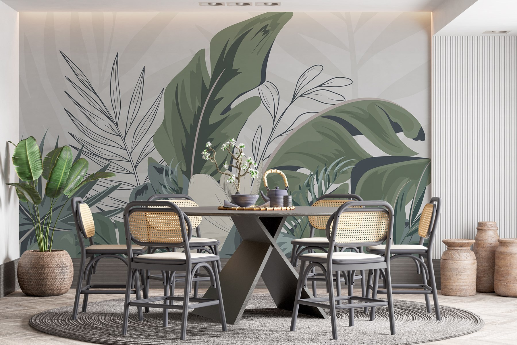 Transforme qualquer espaço num retiro sereno com este deslumbrante mural de parede, “Natural Foliage in Harmony and Balance”. Imagine entrar num paraíso exuberante todas as manhãs, onde os verdes vibrantes e as texturas suaves o convidam a descontrair. Este mural combina na perfeição as vibrações tropicais com uma estética calmante, tornando-o um cenário fantástico para serões tranquilos ou reuniões animadas. Imagine-se a beber café rodeado pela beleza da natureza ou a receber amigos num cenário semelhante a um oásis. É como convidar um pedaço do ar livre para a sua casa – sem os insectos! Ideal para salas de estar, quartos ou até mesmo espaços criativos, é certo que despertará alegria e um pouco de inveja nos convidados. Equilíbrio, harmonia e um toque de natureza – que mais se pode pedir?