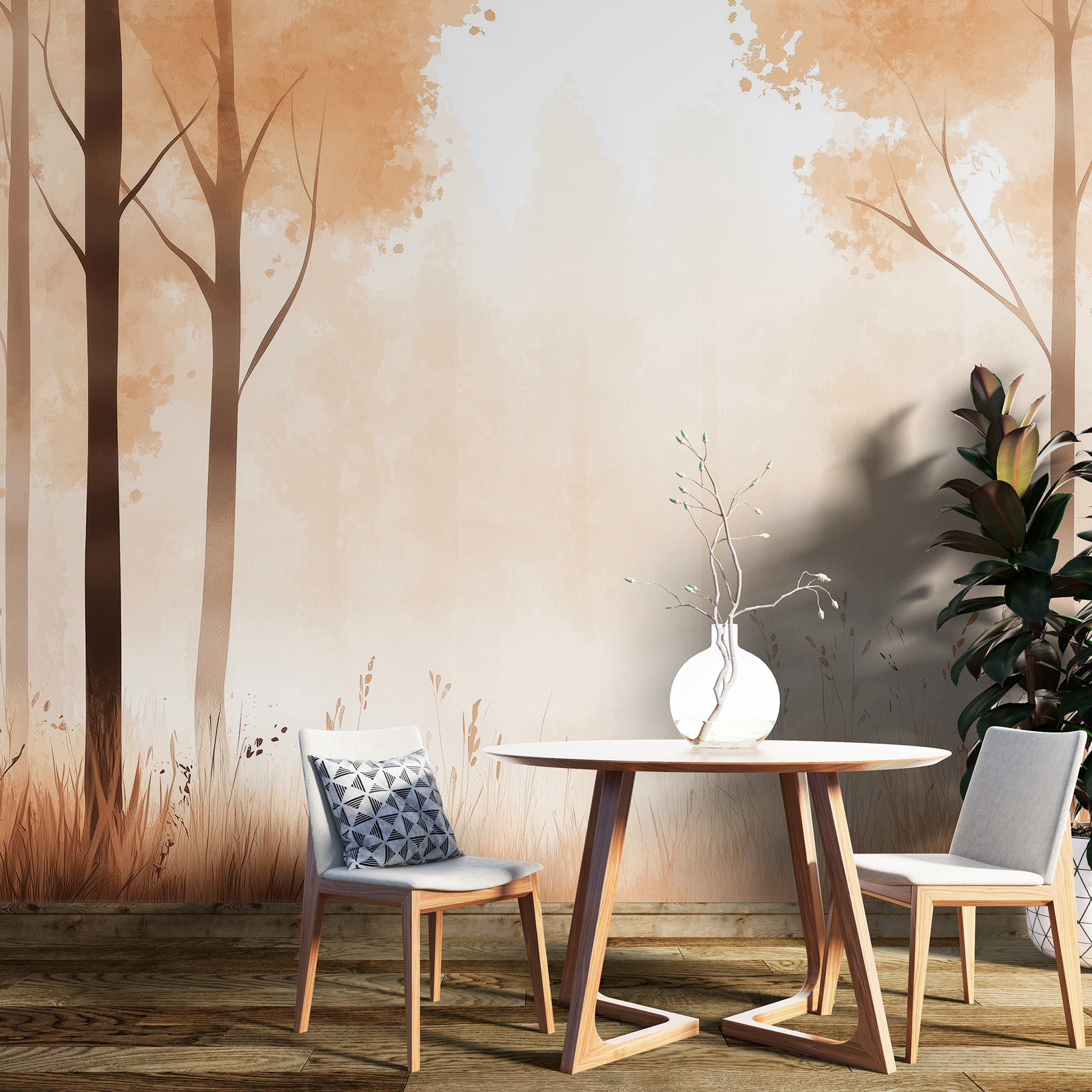 Imagine entrar numa sala onde a azáfama se desvanece – é só você e uma tranquila floresta enevoada. Este mural traz essa vibração serena diretamente para casa. As árvores e a relva sussurram segredos através da névoa, envolvendo o seu espaço em calma. Perfeito para os amantes da natureza ou para quem está cansado de olhar para paredes simples. É como uma cápsula de fuga natural – sem sair do seu sofá! Além disso, é capaz de provocar alguns momentos de “uau, onde é que arranjaste isso?” nos visitantes. Respire fundo e deixe esta floresta fazer a sua magia.