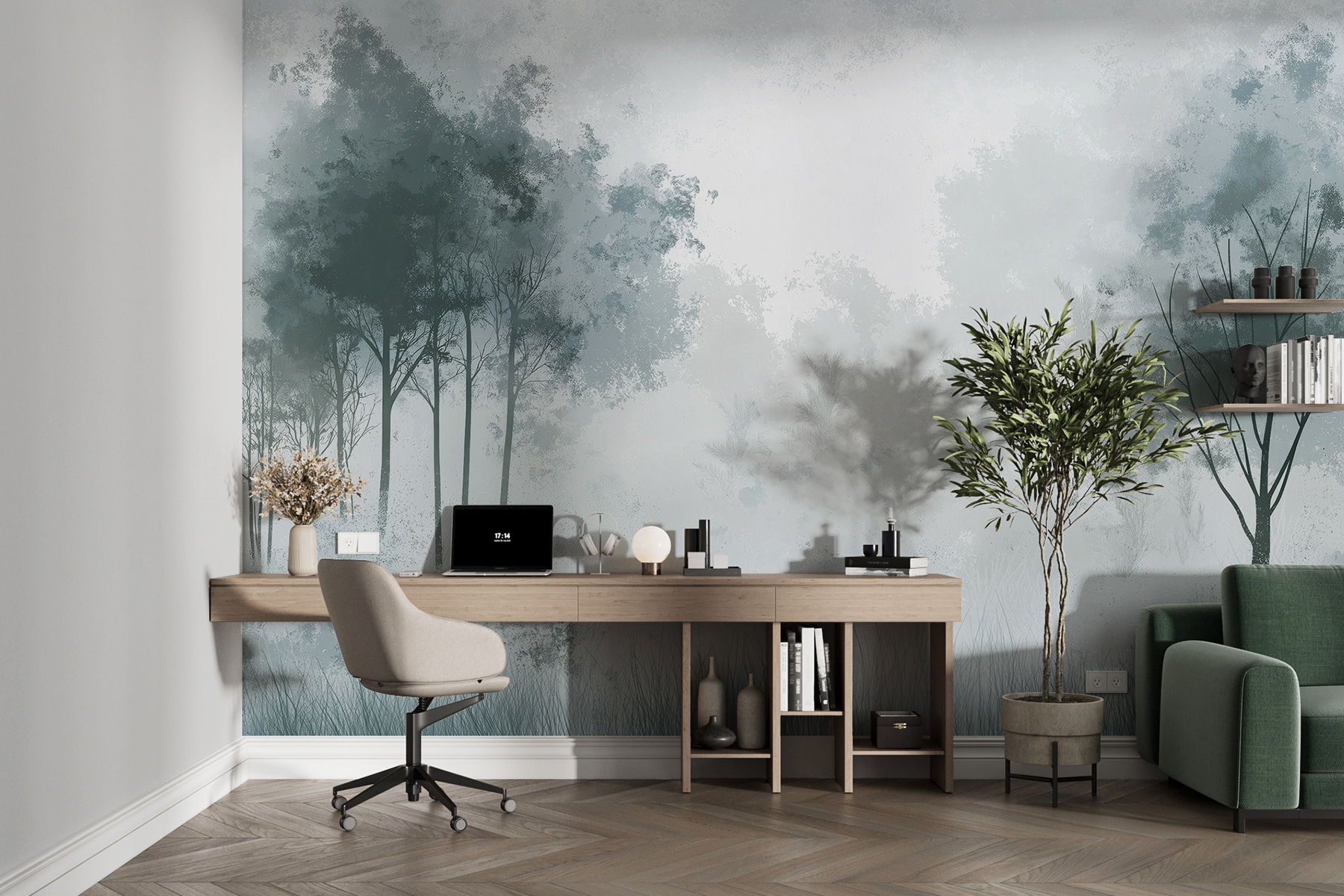 Imagine acordar com manhãs de nevoeiro todos os dias – sem precisar de um guarda-chuva. Este mural “Foggy Forest with Trees” envolve o seu quarto em tranquilidade e um toque de mistério, como se estivesse a entrar numa cena de filme de floresta de sonho. É perfeito para quando precisa de uma pausa na azáfama do dia a dia. Até pode começar a esperar que as criaturas da floresta apareçam para o cumprimentar! Um ambiente suave e uma vibração pacífica que faz com que até a casa mais movimentada se sinta como uma fuga serena.