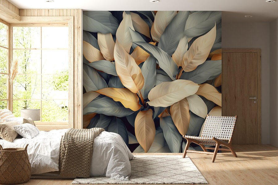 Transforme o seu espaço com este espantoso mural de parede de folhas coloridas. Imagine entrar numa sala onde a natureza ganha vida, envolvendo-o em calor e tranquilidade. A cada olhar, esses tons suaves de creme e dourado dançando contra tons frios criam uma atmosfera suave e vibrante. É como trazer o ar livre para dentro de casa sem o risco de regar uma única planta! Ideal para um recanto de leitura acolhedor ou um escritório animado, este mural pode fazer com que todos os dias pareçam um passeio refrescante por um jardim exuberante. A mistura de cores eleva subtilmente o espírito e desperta inspiração, tornando-o perfeito para quem quer criar um retiro convidativo. Não se surpreenda se der por si a sonhar acordado no meio das folhas – é um daqueles murais que o atrai!