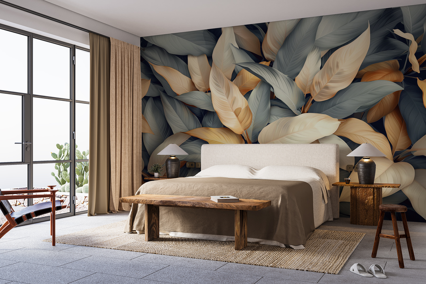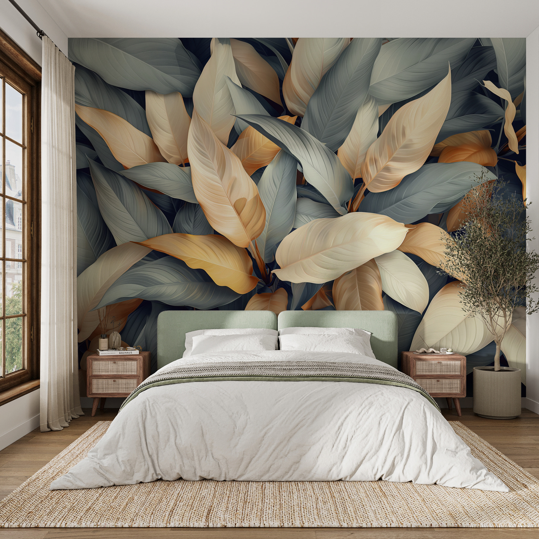 Transforme o seu espaço com este espantoso mural de parede de folhas coloridas. Imagine entrar numa sala onde a natureza ganha vida, envolvendo-o em calor e tranquilidade. A cada olhar, esses tons suaves de creme e dourado dançando contra tons frios criam uma atmosfera suave e vibrante. É como trazer o ar livre para dentro de casa sem o risco de regar uma única planta! Ideal para um recanto de leitura acolhedor ou um escritório animado, este mural pode fazer com que todos os dias pareçam um passeio refrescante por um jardim exuberante. A mistura de cores eleva subtilmente o espírito e desperta inspiração, tornando-o perfeito para quem quer criar um retiro convidativo. Não se surpreenda se der por si a sonhar acordado no meio das folhas – é um daqueles murais que o atrai!