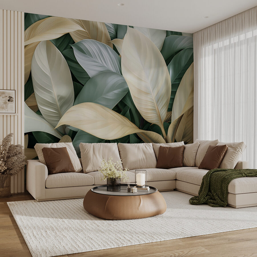 Imagine esta beleza na sua parede – “Lush Leaves in Soft Hues” é como uma brisa suave em forma de obra de arte. Não é apenas um mural; é uma mini-férias para os seus olhos. Perfeito para trazer um pouco do ar livre para dentro de casa, sem o pólen. Os verdes suaves e os cremes dançam juntos como se fossem os melhores amigos desde sempre. Imagine-se a chegar a casa depois de um longo dia, recostar-se na sua cadeira favorita e perder-se naquelas folhas calmantes. Isto não é apenas decoração, meu amigo. É uma dose diária de tranquilidade.