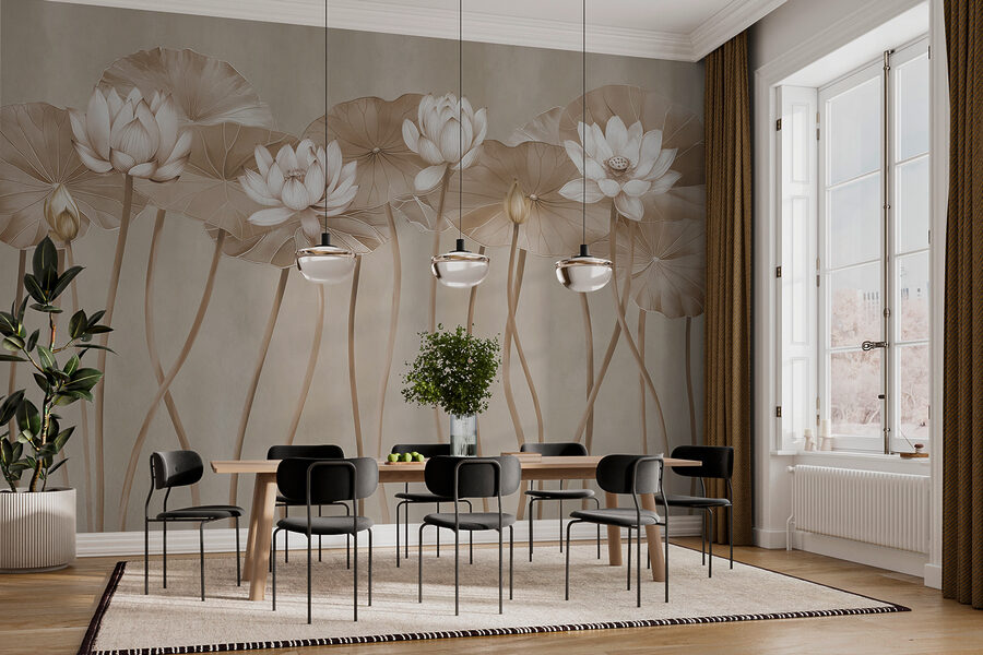 Transforme uma parede simples numa fuga serena com o mural Ethereal Lotus em tons monocromáticos. Imagine entrar num jardim tranquilo, onde delicadas flores de lótus balançam suavemente nas suas hastes altas. Esta arte de parede traz um toque de natureza para dentro de casa, criando um ambiente calmante que sussurra: “Respire fundo; está em casa”. Perfeito para qualquer espaço que necessite de um pouco de charme, pode suscitar conversas ou simplesmente proporcionar um cenário tranquilo enquanto bebe o café da manhã. É como ter um mini oásis exatamente onde precisa dele. Além disso, quem é que não gosta de um bom momento de flor de lótus?