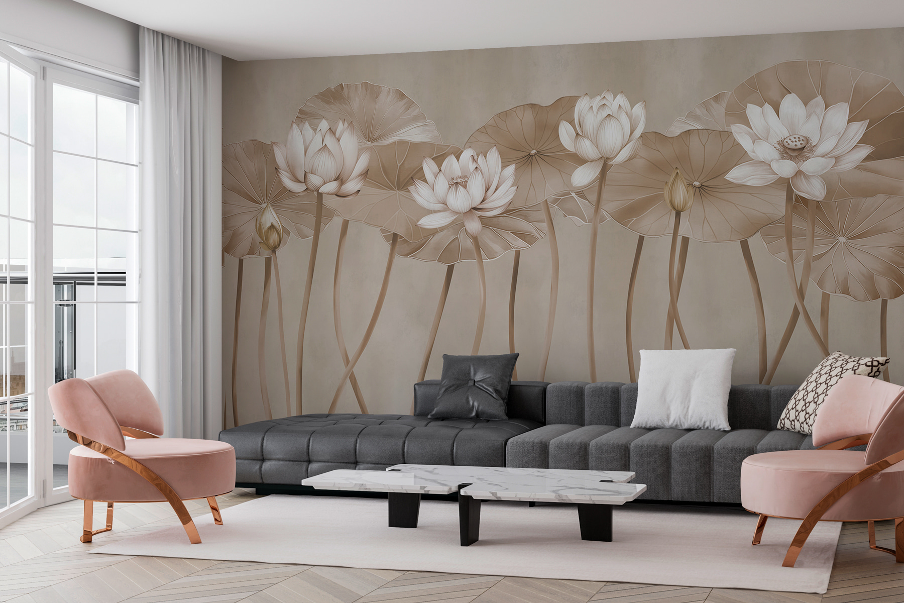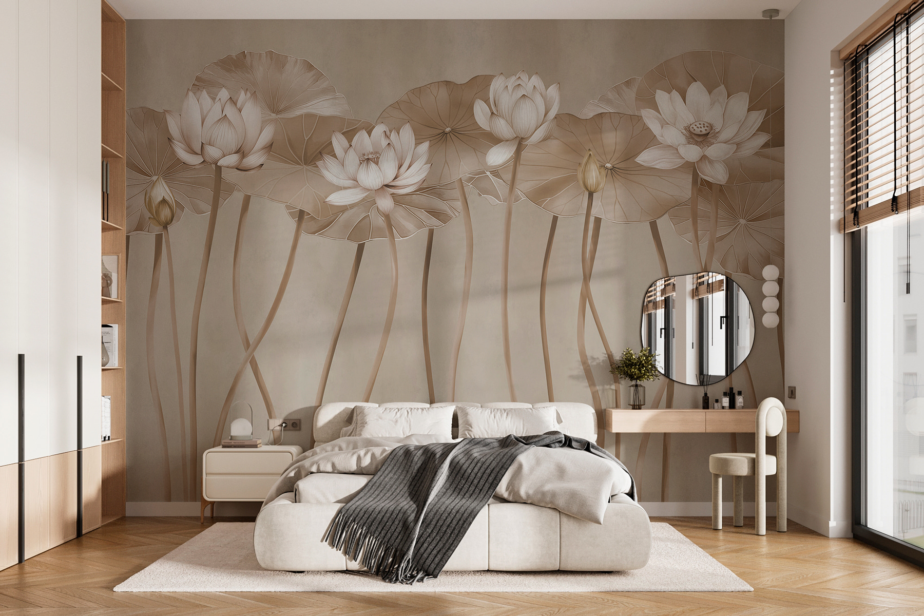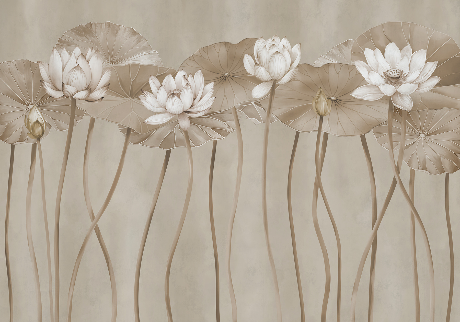 Transforme uma parede simples numa fuga serena com o mural Ethereal Lotus em tons monocromáticos. Imagine entrar num jardim tranquilo, onde delicadas flores de lótus balançam suavemente nas suas hastes altas. Esta arte de parede traz um toque de natureza para dentro de casa, criando um ambiente calmante que sussurra: “Respire fundo; está em casa”. Perfeito para qualquer espaço que necessite de um pouco de charme, pode suscitar conversas ou simplesmente proporcionar um cenário tranquilo enquanto bebe o café da manhã. É como ter um mini oásis exatamente onde precisa dele. Além disso, quem é que não gosta de um bom momento de flor de lótus?