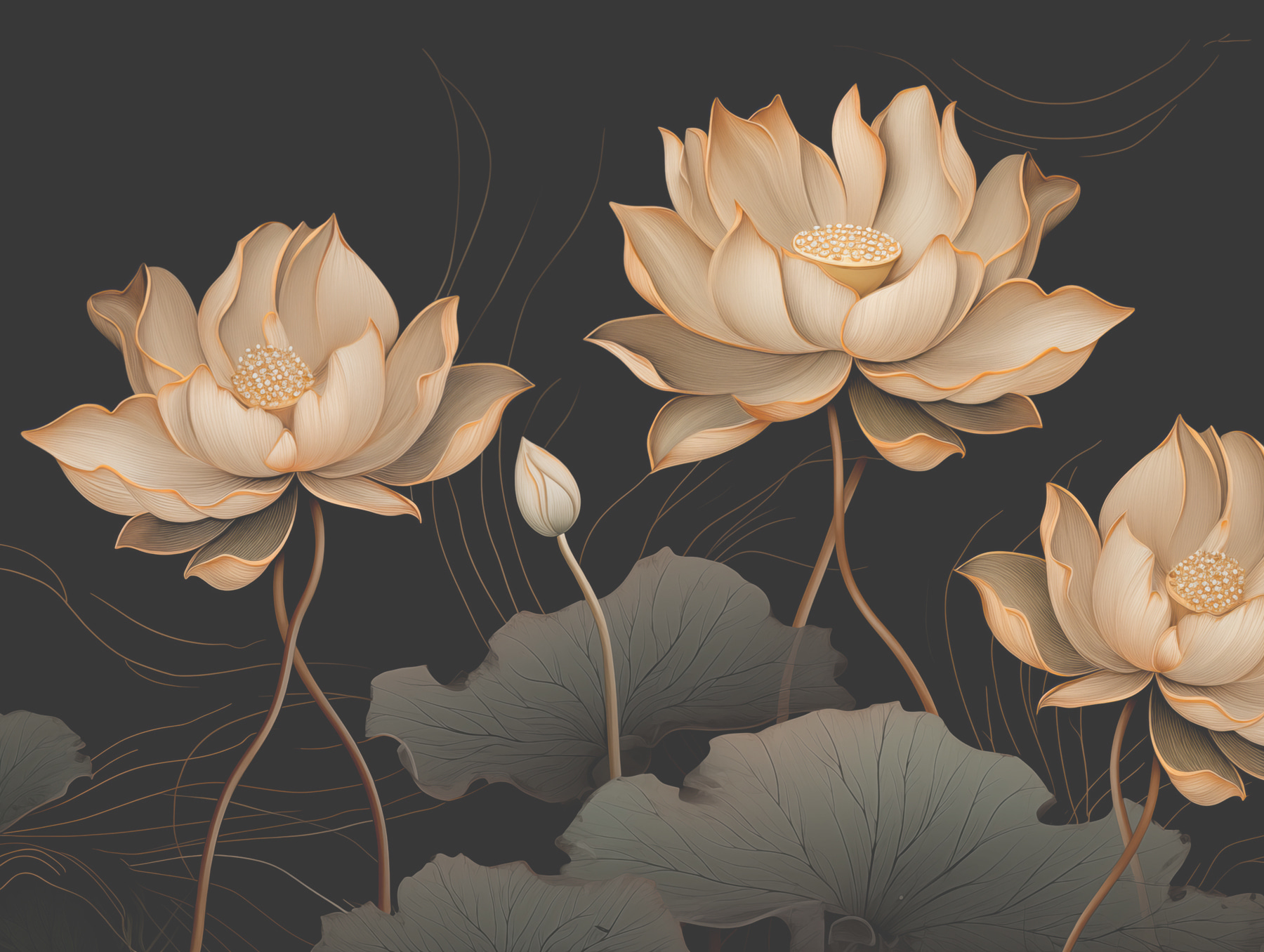Está a pensar em dar um toque de drama ao seu espaço? Veja este mural, “Lótus Elegantes Florescem na Escuridão”. É como uma sinfonia suave para as suas paredes. Imagine-se a beber chá enquanto estes lótus serenos transformam silenciosamente o seu quarto num oásis de tranquilidade. As sombras dançam, as pétalas sussurram – é uma vibração! Perfeito para quem gosta de um pouco do mistério da natureza dentro de casa. Os amigos vão entrar e dizer: “Uau, qual é o teu segredo?” Está tudo na magia do lótus. O equilíbrio perfeito entre calma e elegância.