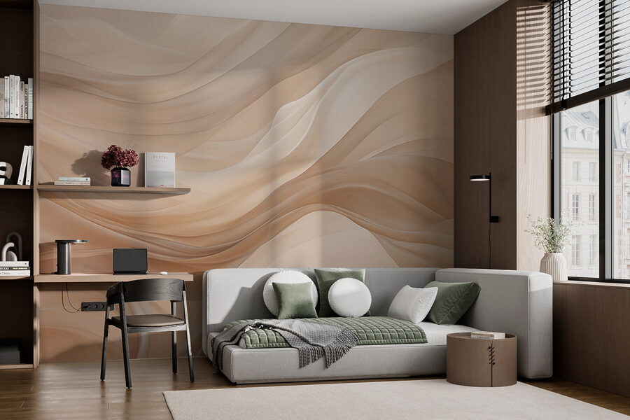 Imagine entrar numa sala que parece um abraço acolhedor. O mural “Creamy Waves of Silky Texture” faz exatamente isso. Padrões suaves e fluidos em tons quentes criam uma vibração calmante, fazendo com que qualquer espaço se sinta aberto e arejado – pense em vibrações de praia sem a areia. É perfeito para uma sala de estar ou um escritório sereno. Imagine-se a enrolar-se com um livro, com os redemoinhos suaves à sua volta a darem a sensação de que o tempo abranda. Os amigos vão certamente perguntar-lhe onde a arranjou – é o tipo de conversa que dá início. Uma mistura divertida de arte e estilo, este mural acrescenta um carácter único que realça a personalidade do seu espaço.