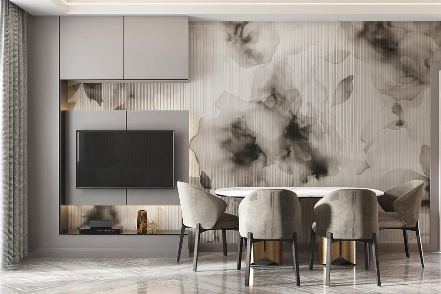 O revestimento de vinil é uma camada fina de PVC aplicada a um substrato não tecido. A presença de vinil torna o papel de parede resistente a danos, permite uma limpeza fácil com uma esponja húmida e confere à superfície uma textura em relevo, que faz lembrar o tecido de linho.
