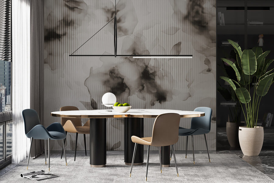 A escolha do material depende da divisão em que planeia utilizar o papel de parede. Para quartos de crianças e quartos de dormir, recomenda-se o material Economy para uma melhor circulação do ar. Para casas de banho e cozinhas, o Vinil Premium é a escolha ideal devido à sua camada extra de verniz, que repele a humidade, a sujidade e é fácil de limpar. Para outras divisões, sugerimos o Vinil ou o Vinil Premium, uma vez que oferecem uma combinação de elevada resistência ao desgaste e saturação de cores vivas.