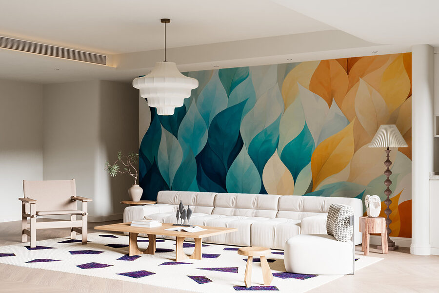 Imagine este mural na sua parede – onde a natureza se encontra com a arte abstrata na mais deliciosa dança de cores. “Colorful Leaves in a Row” parece uma brisa suave a soprar numa loja de doces, deixando para trás uma série de tons deliciosos. Os azuis misturam-se com os amarelos, criando uma vibração quente e acolhedora que é perfeita para despertar a criatividade ou simplesmente relaxar com uma chávena de chá. É como dar um passeio pela natureza na sua sala de estar, sem os incómodos insectos! Cada folha parece sussurrar segredos de calma e criatividade. Uma solução rápida para os azuis das paredes em branco!