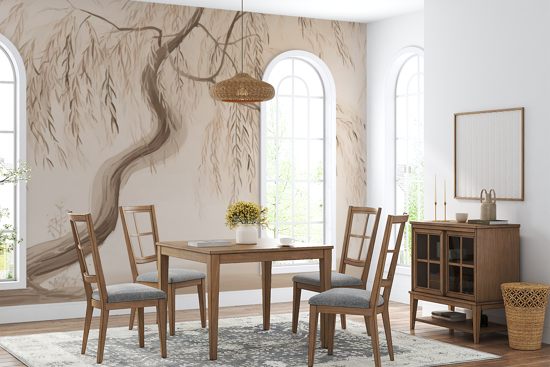 Imagine uma árvore com ramos que se estendem, quase abraçando suavemente as suas paredes. Este mural não é apenas uma decoração, é como ter o seu próprio jardim secreto dentro de casa. É perfeito para criar uma vibração relaxante na sua sala de estar ou uma sensação de aconchego no seu quarto. Imagine-se a enrolar-se com um livro – esta cena a sussurrar calma à sua volta. É a natureza sem os insectos, apenas um toque de tranquilidade. Folhas a farfalhar? Não, este é silencioso, mas fala muito sobre estilo. Os amigos podem demorar um pouco mais, cativados por este toque inesperado do ar livre.