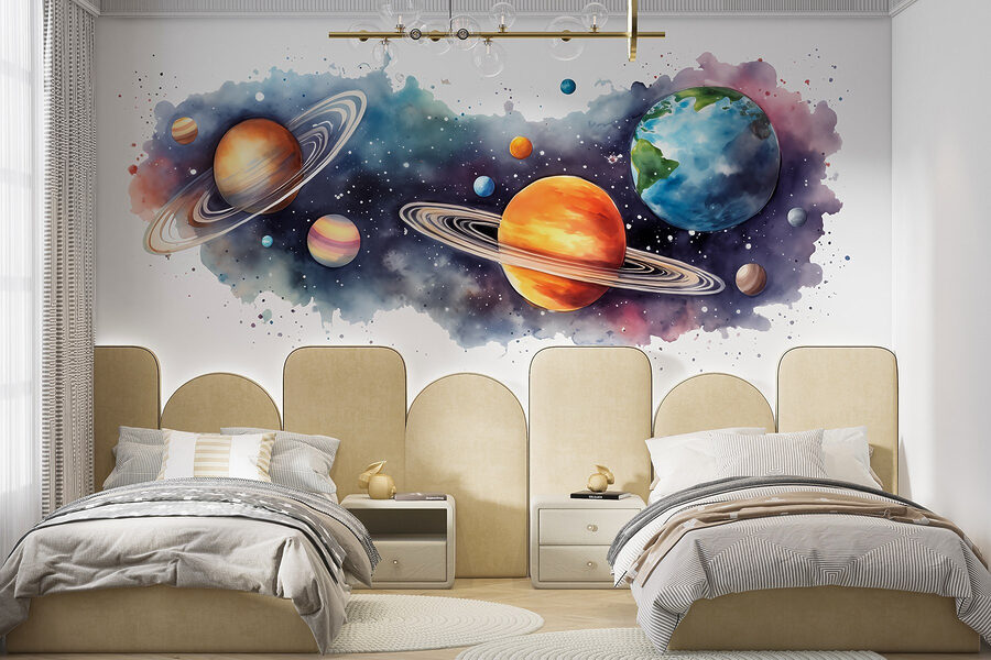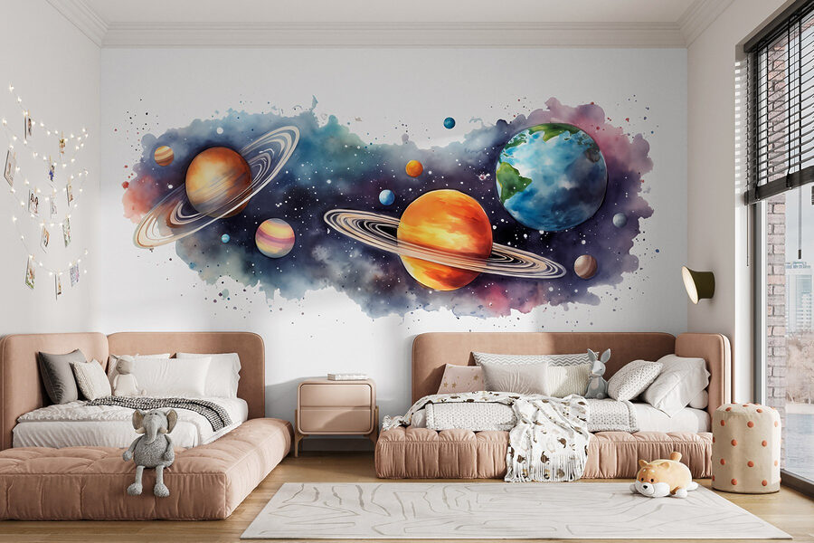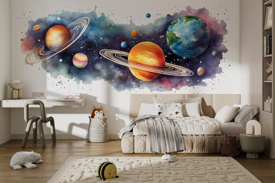Alguma vez sonhou em explorar o universo a partir da sua própria sala de estar? Este mural “Planetas e estrelas” traz o cosmos diretamente para as suas paredes – sem necessidade de uma nave espacial! Imagine-se a beber o seu café da manhã enquanto Saturno e Júpiter lhe fazem companhia. É como um lugar na primeira fila para a galáxia. Tanto as crianças como os adultos sentirão uma sensação de maravilha estrelada sempre que passarem por aqui. Perfeito para dar um toque de mistério e admiração a qualquer espaço. Bónus: é necessária gravidade zero. Quem diria que a decoração de interiores podia ser tão estelar?