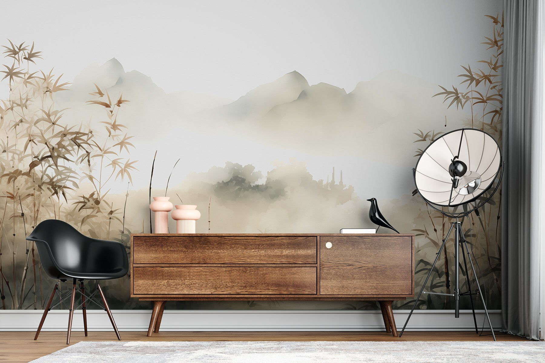 Imagine isto: um mural de paisagem deslumbrante que o leva a um sonho sereno e enevoado. Perfeito para trazer aquela sensação de “acabei de entrar num romance” diretamente para a sua casa. Esta cena sonhadora de plantas envoltas num suave nevoeiro dá um tom calmante, como se estivesse a caminhar por uma floresta onde os pensamentos se movem tão livremente como o nevoeiro da manhã. É como se a sua parede respirasse fundo e decidisse contar uma história tranquila. Uma doce fuga – sem fazer as malas. Ótimo para quem sonha acordado e para os amantes da natureza!