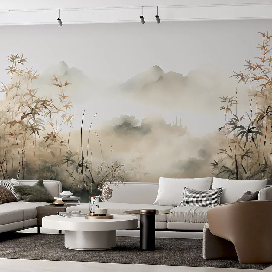 Imagine isto: um mural de paisagem deslumbrante que o leva a um sonho sereno e enevoado. Perfeito para trazer aquela sensação de “acabei de entrar num romance” diretamente para a sua casa. Esta cena sonhadora de plantas envoltas num suave nevoeiro dá um tom calmante, como se estivesse a caminhar por uma floresta onde os pensamentos se movem tão livremente como o nevoeiro da manhã. É como se a sua parede respirasse fundo e decidisse contar uma história tranquila. Uma doce fuga – sem fazer as malas. Ótimo para quem sonha acordado e para os amantes da natureza!