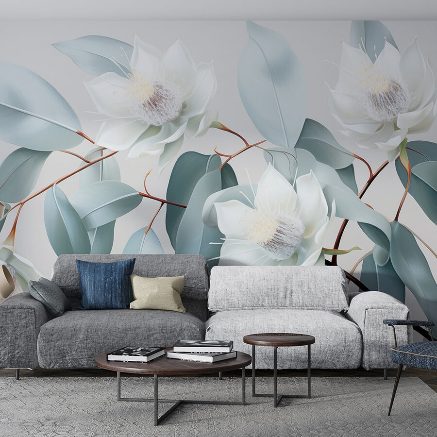 1 avaliação de Papel de parede Flores e folhas brancas num ramo