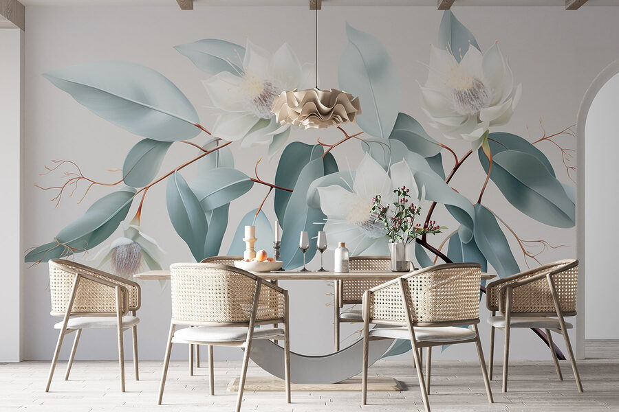Transforme o seu espaço numa fuga serena com este deslumbrante mural de parede, “Flores brancas e folhas num ramo”. Imagine-se a acordar com estas delicadas flores todas as manhãs, deixando que a sua beleza calma o envolva como uma brisa suave. As cores suaves e os detalhes intrincados criam um pano de fundo calmante, perfeito para um recanto de leitura acolhedor ou uma área de jantar chique. É como trazer um pouco da natureza para dentro de casa, mas sem o pólen incómodo! Os amigos vão comentar como o seu espaço é refrescante e vai ser a inveja de todos os amigos que adoram plantas. A sério, quem diria que decorar podia ser tão fácil e agradável? Basta um olhar e é difícil não sorrir.