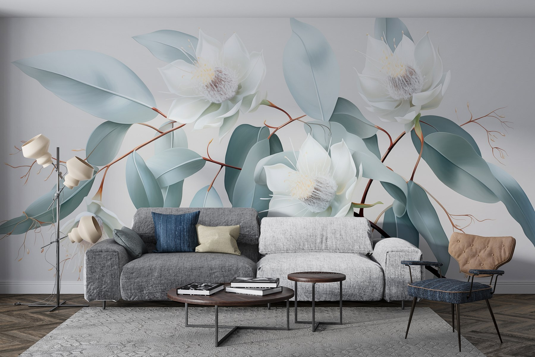 1 avaliação de Papel de parede Flores e folhas brancas num ramo