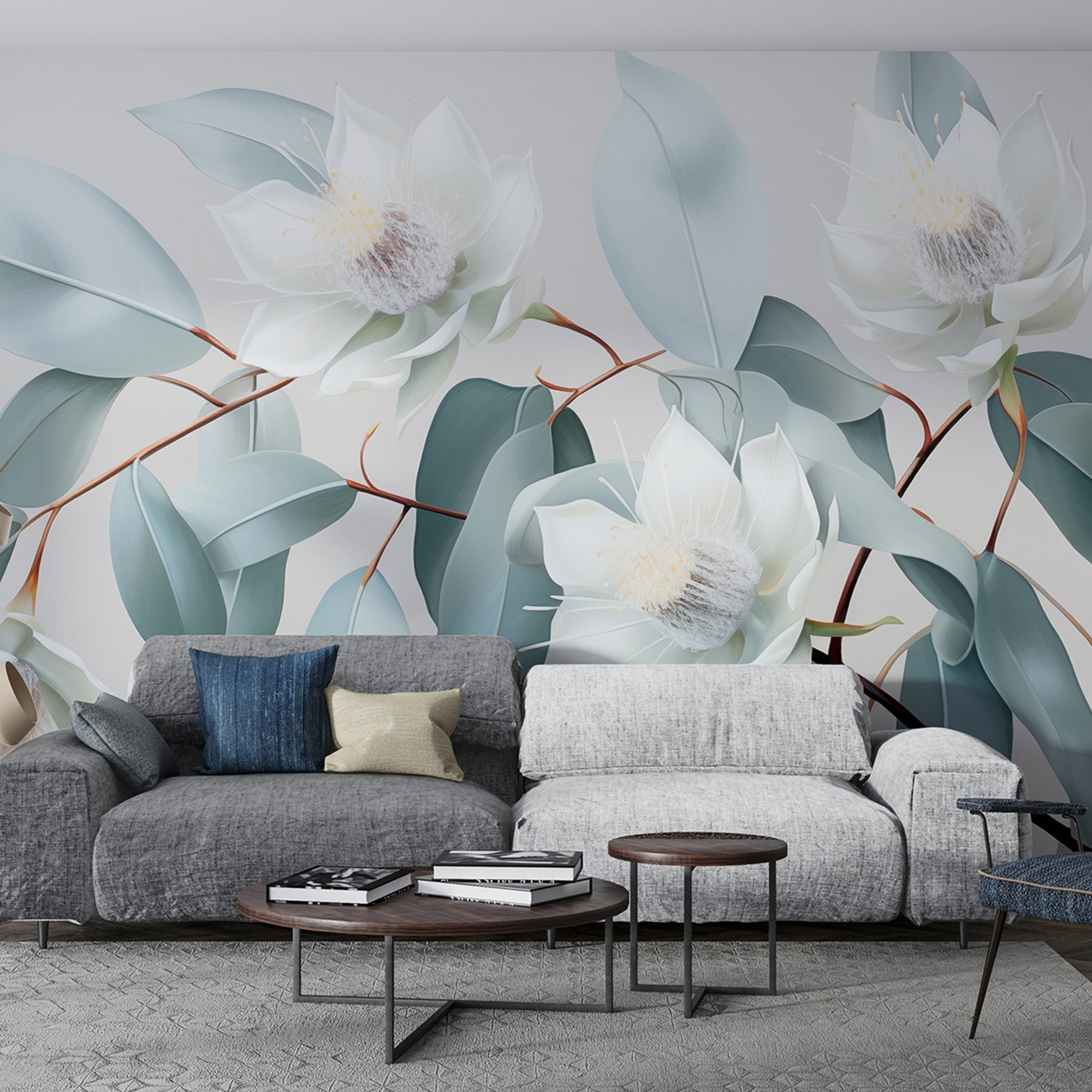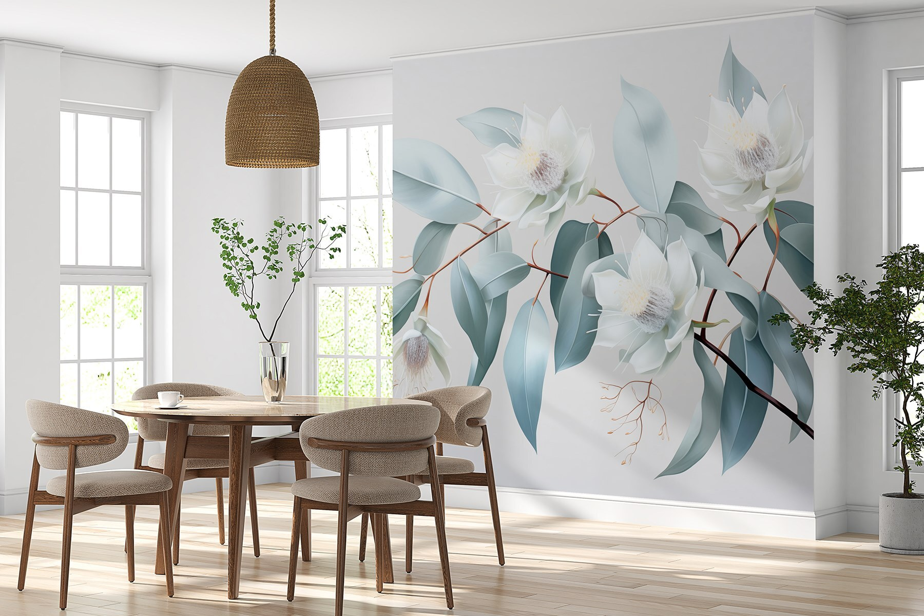 Transforme o seu espaço numa fuga serena com este deslumbrante mural de parede, “Flores brancas e folhas num ramo”. Imagine-se a acordar com estas delicadas flores todas as manhãs, deixando que a sua beleza calma o envolva como uma brisa suave. As cores suaves e os detalhes intrincados criam um pano de fundo calmante, perfeito para um recanto de leitura acolhedor ou uma área de jantar chique. É como trazer um pouco da natureza para dentro de casa, mas sem o pólen incómodo! Os amigos vão comentar como o seu espaço é refrescante e vai ser a inveja de todos os amigos que adoram plantas. A sério, quem diria que decorar podia ser tão fácil e agradável? Basta um olhar e é difícil não sorrir.