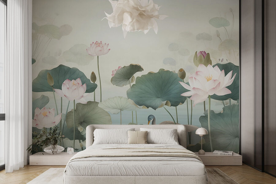 Transforme qualquer espaço num oásis de tranquilidade com este mural encantador de um pato a remar graciosamente por um lago sereno adornado com belas flores de lótus. O efeito suave da aguarela confere um ambiente de sonho, perfeito para um recanto de leitura acolhedor ou para um retiro tranquilo no quarto. Imagine-se a envolver-se nas cores calmantes enquanto bebe um chá ou sonha acordado com lugares longínquos. É como trazer um sussurro da natureza para dentro de casa sem todos os insectos irritantes! Este mural não é apenas uma decoração; é um pequeno pedaço de tranquilidade que evoca um suspiro suave sempre que passa por ele.