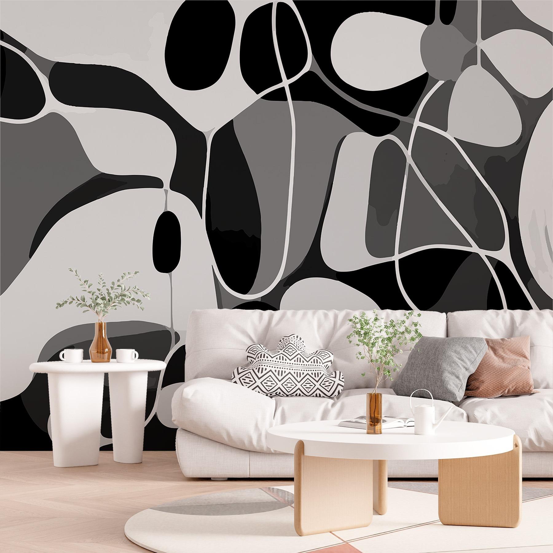 Já pensou em transformar a sua parede num ponto de partida para uma conversa? Este mural a preto e branco não se limita a ficar ali pendurado – tem histórias para contar. Parte arte contemporânea, parte ilusão de ótica, vai fazer com que os visitantes fiquem de olhos fechados e inclinem a cabeça (no bom sentido). Imagine-se a beber café enquanto se perde nos seus remoinhos abstractos. É como um expresso visual para o seu espaço! É perfeito para aqueles dias em que precisa de um pouco de inspiração – ou apenas um fundo elegante para as suas chamadas de vídeo. Simples mas profundo, é magia artística mesmo em casa.
