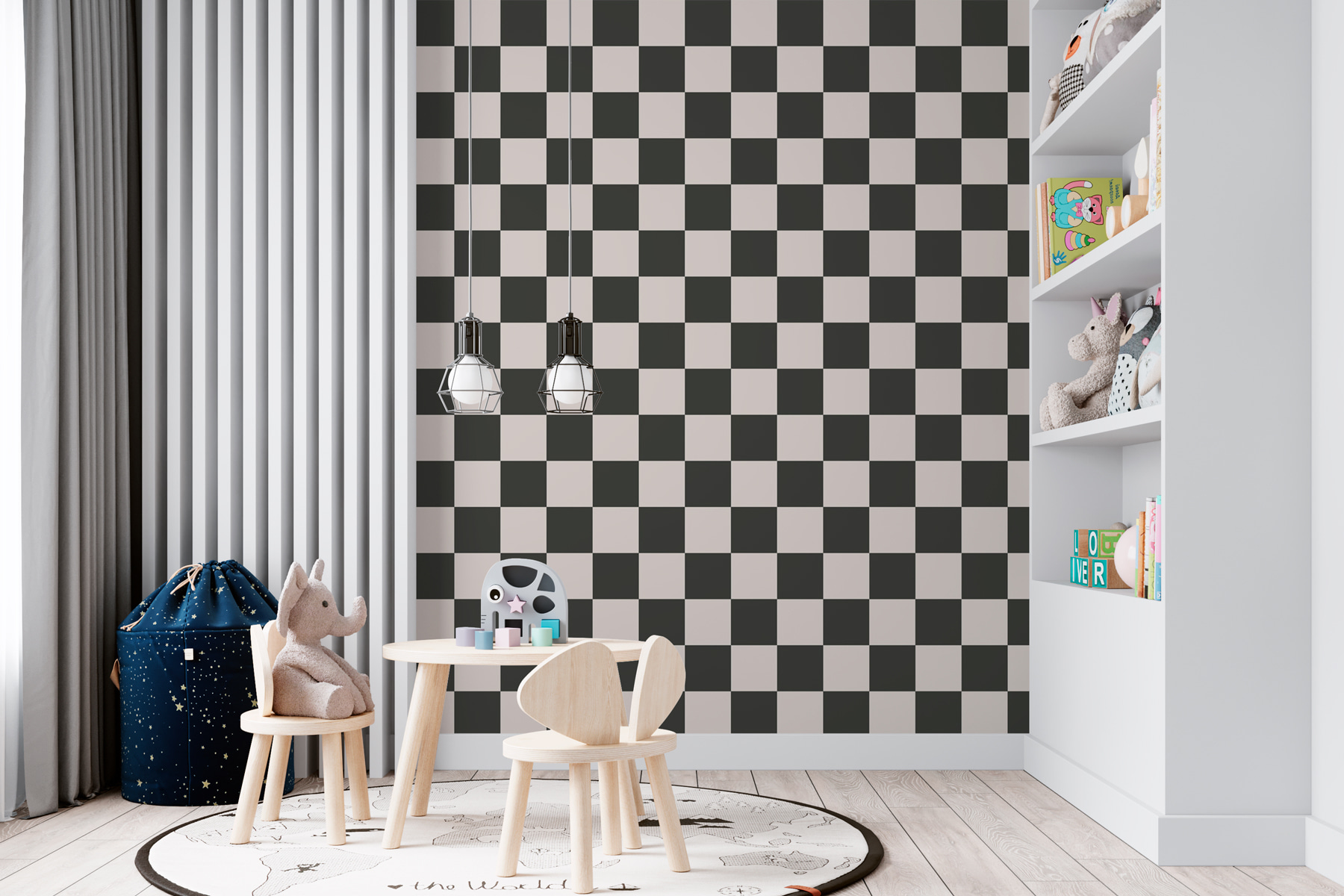 Transformar um espaço pode parecer um pouco mágico, certo? Este mural de parede, com o seu impressionante padrão axadrezado a preto e branco, é como entrar num sofisticado jogo de xadrez. Imagine entrar numa sala onde as paredes sussurram elegância e estilo – muito chique!