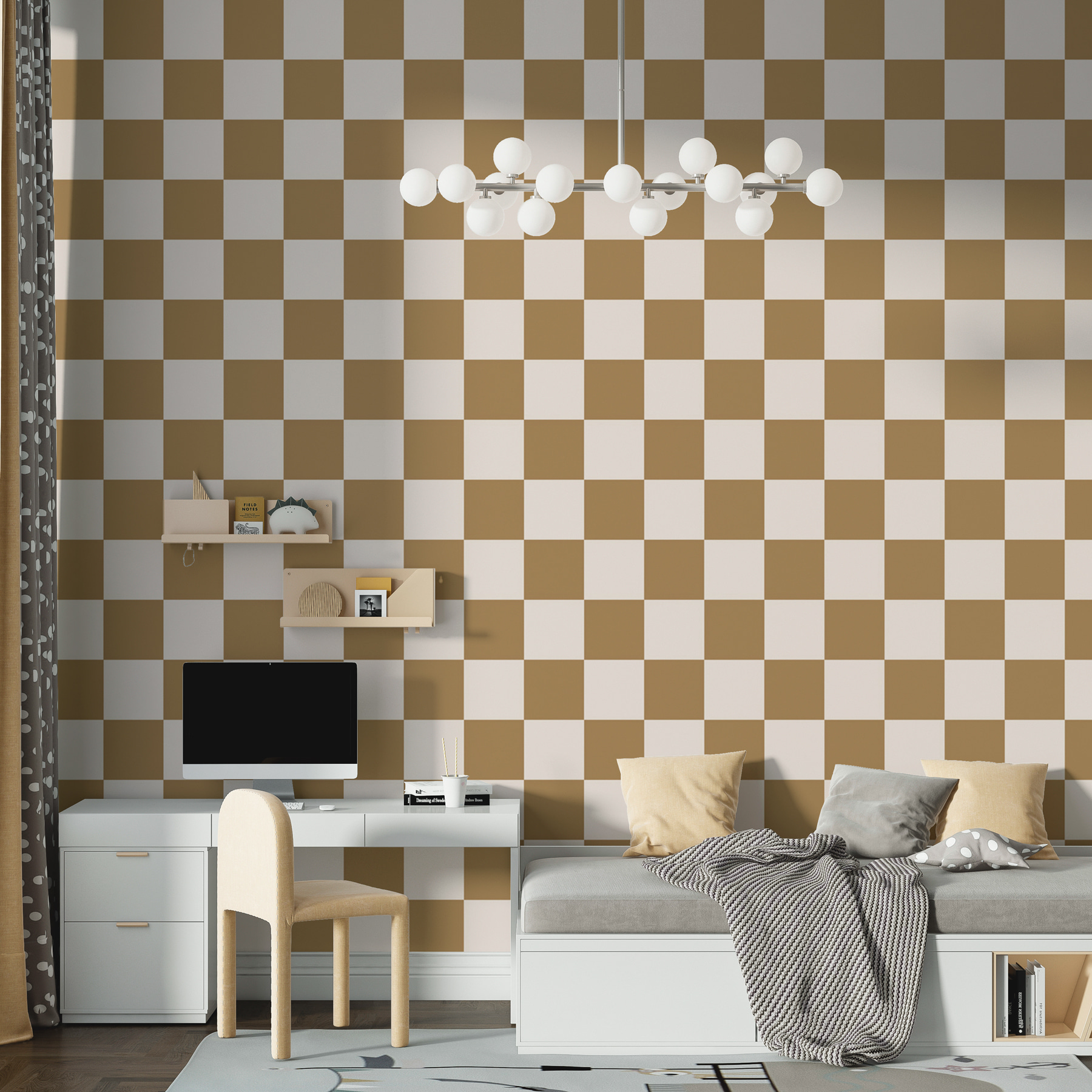 Imagine entrar numa sala que parece um café acolhedor, graças a este encantador mural axadrezado castanho e branco. Tem aquela vibração clássica de tabuleiro de xadrez que desperta a nostalgia – pense em noites de jogos ou na cozinha da avó. Cada quadrado parece convidá-lo a sentar-se, a relaxar e talvez a beber uma bebida quente enquanto conversa sobre tudo e sobre nada. Os tons suaves e terrosos fundamentam o espaço, tornando-o convidativo e elegante. Perfeito para uma parede de afirmação ou para complementar uma coleção de peças de arte peculiares. É como vestir a sua camisola favorita – familiar, reconfortante e um pouco chique!