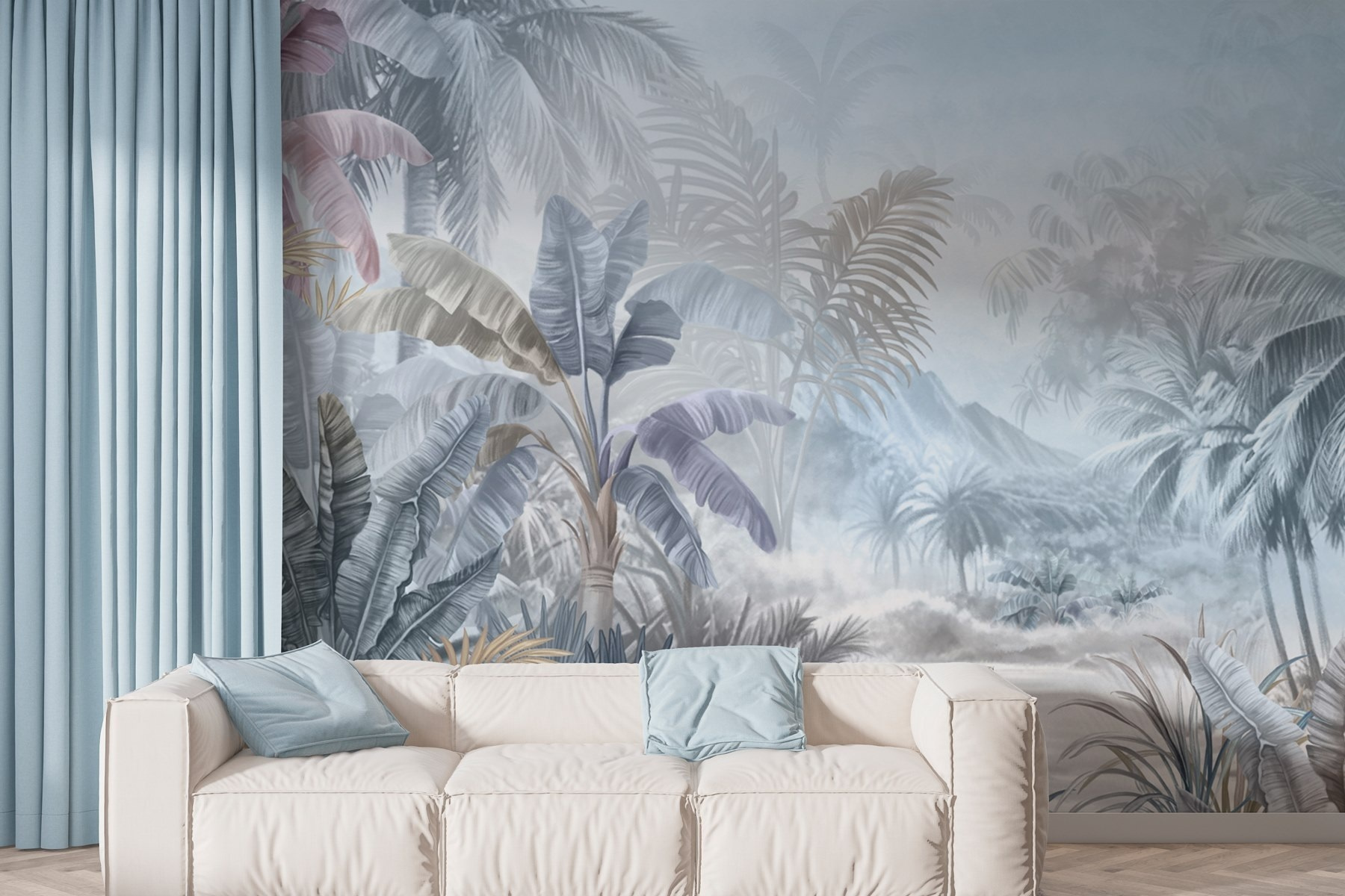 Transforme qualquer espaço numa fuga tranquila com este deslumbrante mural da selva. Imagine entrar numa serena floresta tropical onde as folhas exuberantes balançam suavemente e as cores suaves criam uma atmosfera calmante. É como umas mini-férias na sua parede – não são necessários bilhetes de avião! A delicada mistura de azuis, verdes e pastéis suaves é refrescante, quase como uma névoa matinal num paraíso tropical. Quer seja numa sala de estar acolhedora ou num quarto iluminado pelo sol, este mural dá vida e relaxamento à divisão. Perfeito tanto para os amantes da natureza como para os sonhadores do dia! Além disso, convida aquele vizinho que está sempre a dizer que precisa de mais natureza na sua vida. Sabe como é!
