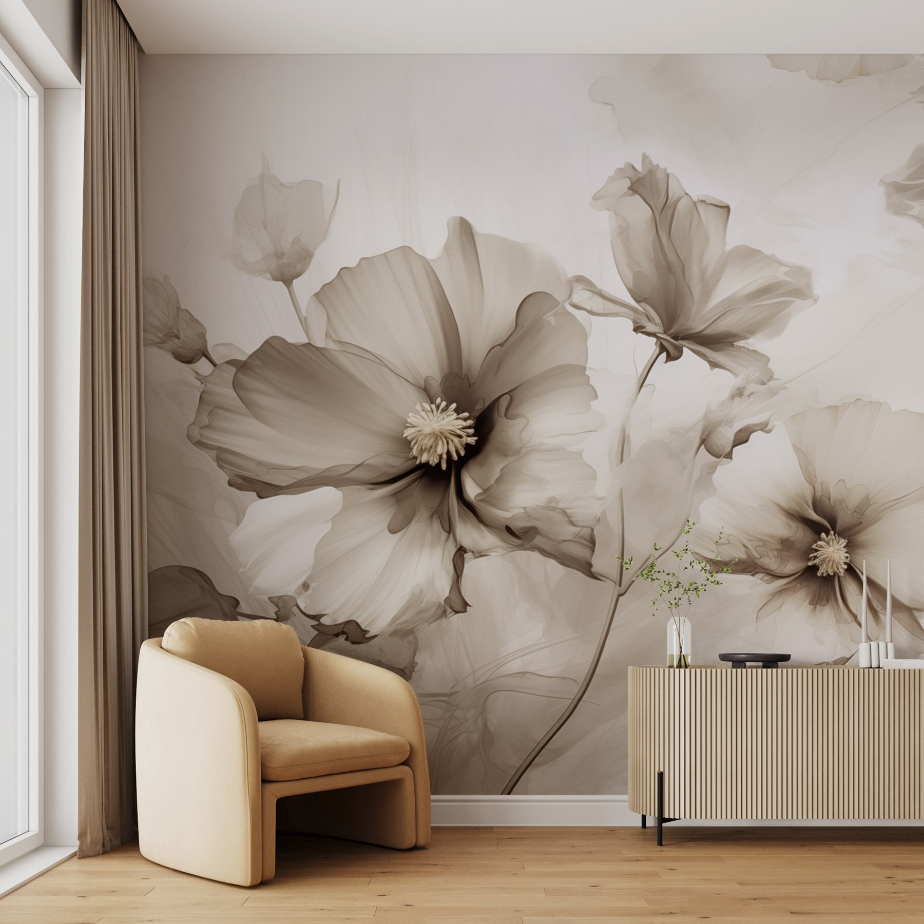 Transforme o seu espaço com este deslumbrante mural de parede com um lindo grupo de flores num fundo branco suave. É como trazer um pouco do encanto do jardim para dentro de casa – sem ter de tirar as ervas daninhas e regar! Imagine acordar todos os dias com estas flores elegantes, as suas linhas suaves e cores subtis a sussurrar serenidade. Quer seja na sua sala de estar, no seu quarto ou naquele pequeno recanto de leitura que tem estado a negligenciar, este mural acrescenta um toque de natureza que parece fresco e convidativo. Perfeito para quem gosta de beleza sem complicações. Imagine-se a beber café e a mergulhar na tranquilidade – é como um abraço diário da natureza!