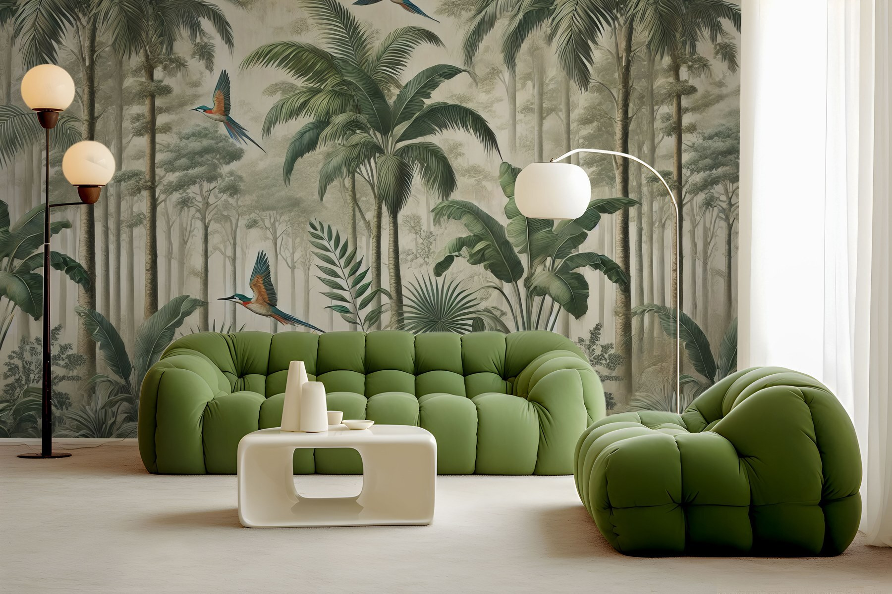 Transforme qualquer divisão numa fuga tranquila com este deslumbrante mural de pássaros a voar sobre uma floresta luxuriante. Imagine entrar e sentir-se como se estivesse numa selva serena, onde as cores vibrantes se destacam e o ar é rico com o aroma da folhagem tropical. O voo brincalhão dos pássaros acrescenta um toque de capricho, iluminando até os espaços mais monótonos. Perfeito para criar um recanto de leitura acolhedor ou um retiro tranquilo, este mural sussurra suavemente a aventura e a calma. Ideal para quem gosta da natureza ou precisa apenas de uma pequena fuga da azáfama do dia a dia – porque quem não quer sentir que está numa escapadela tropical? Por isso, deixe as suas paredes cantarem e eleve o seu espaço!