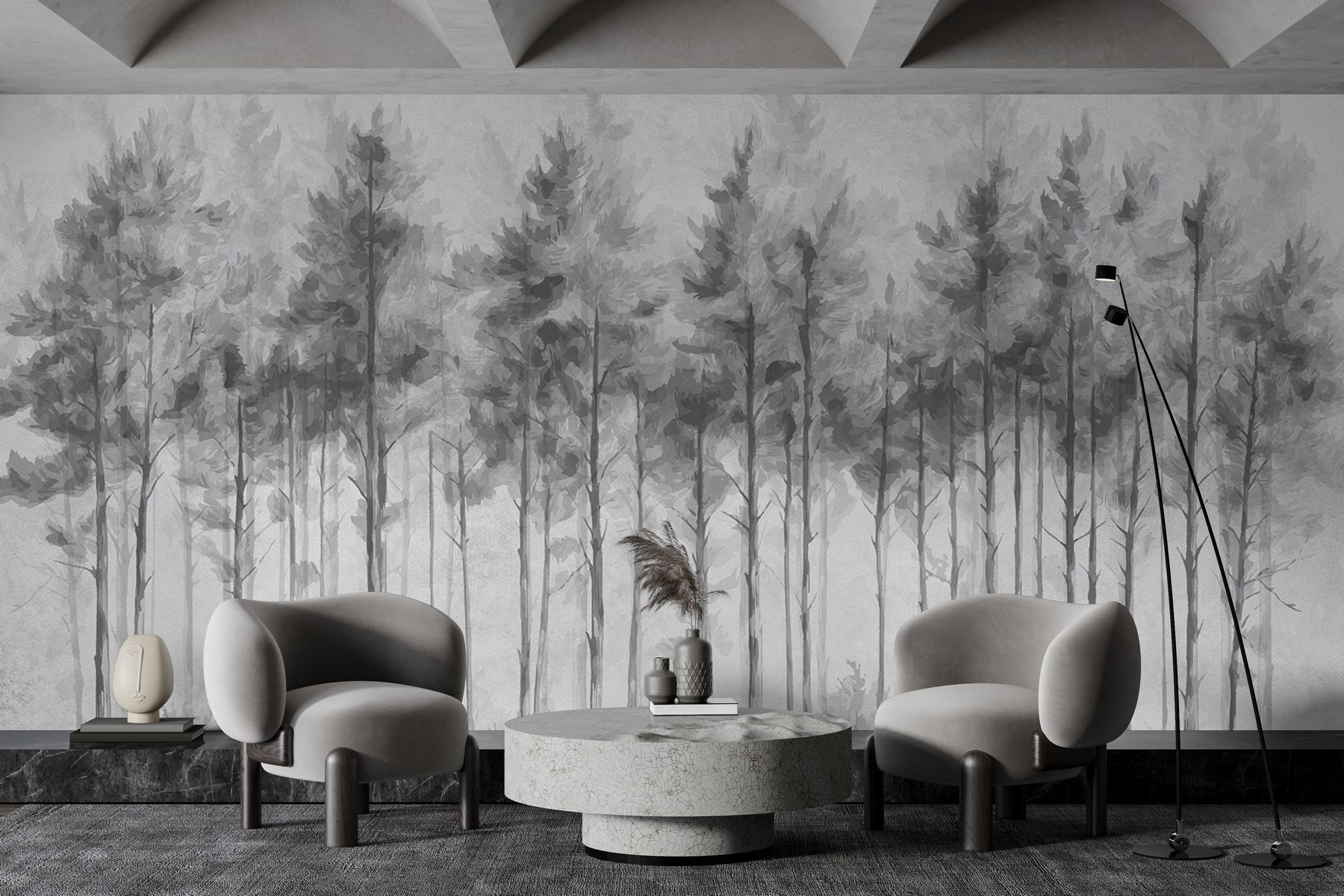 Imagine-se a entrar numa floresta serena sempre que entra no seu quarto. Este mural, “Grupo de árvores numa floresta”, capta essa vibração de sonho, misturando uma paleta suave de cinzentos com elegantes silhuetas de árvores. É como um sussurro suave da natureza, convidando à calma e ao aconchego. Perfeito para uma sala de estar ou para um recanto de leitura, pode inspirá-lo a enrolar-se com um bom livro – ou talvez a planear aquela viagem de caminhadas com que tem sonhado. Além disso, quem não quereria um mural que faz com que as suas paredes pareçam uma fuga pacífica? Os amantes da natureza regozijam-se – este é o ideal!