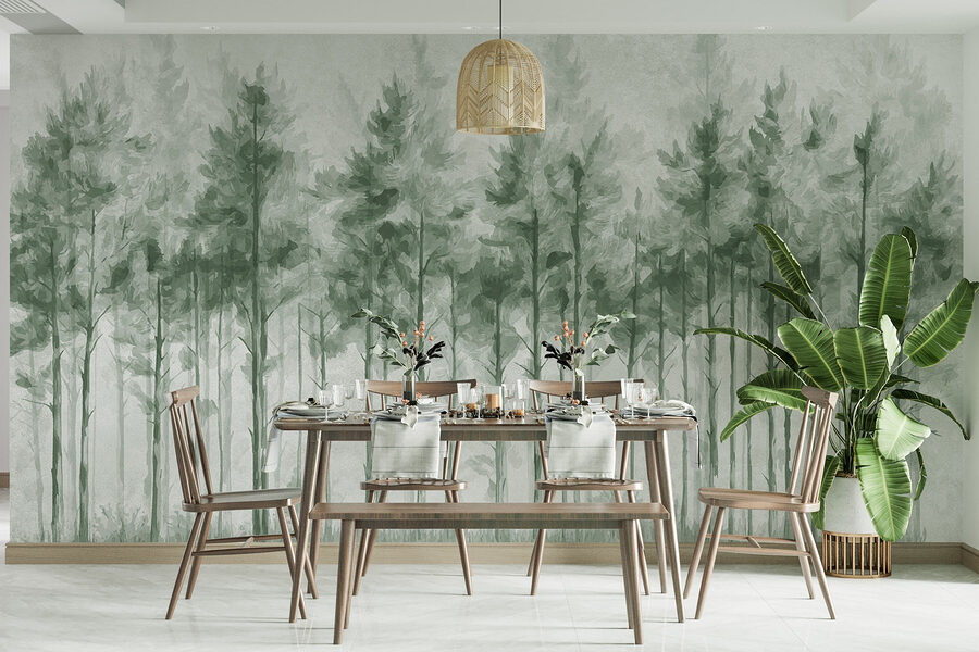 Transforme uma parede simples numa fuga serena com este mural “Grupo de árvores numa floresta”. Imagine entrar numa floresta suave, onde os verdes suaves e a névoa delicada o convidam a respirar fundo e a descontrair. É como trazer uma fatia da natureza para dentro de casa – sem insectos, sem botas enlameadas! Perfeito para um recanto acolhedor na sala de estar ou para um retiro calmante no quarto, este mural sussurra tranquilidade. Imagine-se a beber café enquanto olha para estas árvores, deixando a sua mente vaguear por trilhos florestais tranquilos. Um pouco de natureza pode fazer maravilhas para a alma!
