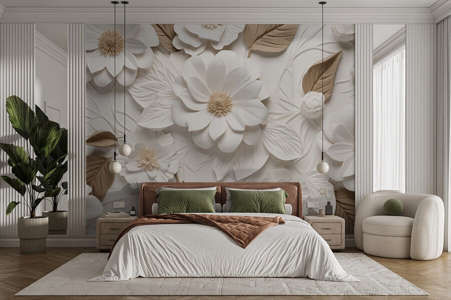 Transforme qualquer espaço com este deslumbrante mural de parede com flores brancas e castanhas envoltas em folhas delicadas. Imagine entrar numa sala que se sente instantaneamente mais convidativa, como se a natureza tivesse decidido aconchegar-se nas suas paredes! Os tons subtis criam uma vibração serena, perfeita para qualquer ambiente – desde um quarto relaxante a uma sala de estar animada.