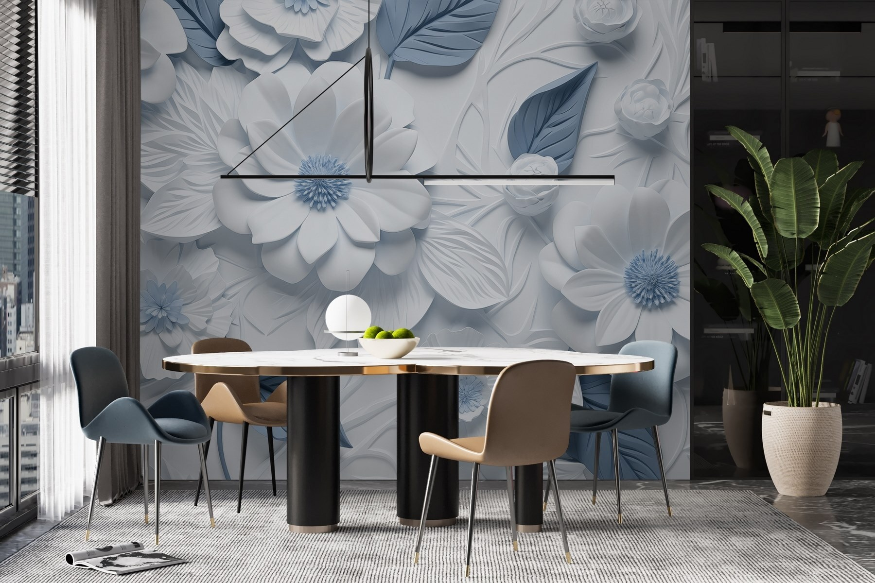 Transforme qualquer divisão numa fuga serena com este encantador mural de parede com lindas flores brancas e azuis. É como entrar num jardim tranquilo, mesmo no conforto do lar. Os pormenores intrincados das flores e das folhas criam uma vibração refrescante, despertando a imaginação de dias de sol e brisas suaves. Imagine um recanto de leitura acolhedor ou uma sala de estar animada realçada por este toque artístico. Os amigos darão por si a parar a meio de uma conversa, só para a admirar. Não se trata apenas de decoração; é um sentimento – calmante, edificante e perfeito para sonhar acordado.