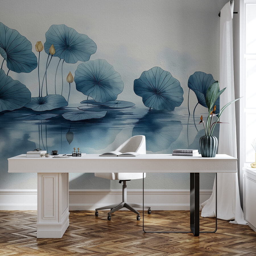 Transforme qualquer espaço com este mural encantador de nenúfares a flutuar graciosamente em azuis suaves. Imagine entrar numa divisão e sentir instantaneamente que entrou num lago sereno – a sério, quem não precisa dessa vibração? O efeito suave da aguarela confere-lhe um encanto tranquilo, tornando-a perfeita para um quarto ou um recanto de leitura acolhedor. Imagine-se a bebericar chá, a sonhar acordado enquanto a cena tranquila acalma a mente. É como a arte da natureza, mas sem os insectos e a lama! Este mural fará com que as paredes falem muito sobre o seu estilo único, acrescentando um toque de tranquilidade e um toque de capricho.