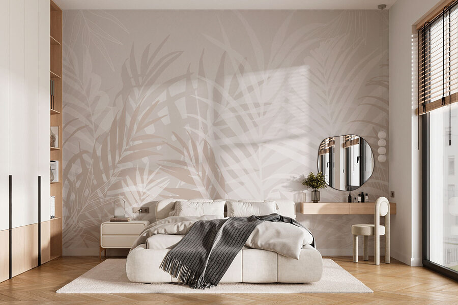 Traga um toque dos trópicos para casa com este deslumbrante mural de parede com elegantes folhas brancas e castanhas. Imagine entrar numa sala onde o exterior se sente abraçado por dentro – é como um suave sussurro da natureza sempre que entra. Este mural acrescenta uma vibração que é simultaneamente calmante e um pouco aventureira, perfeita para áreas de estar ou recantos de leitura acolhedores.