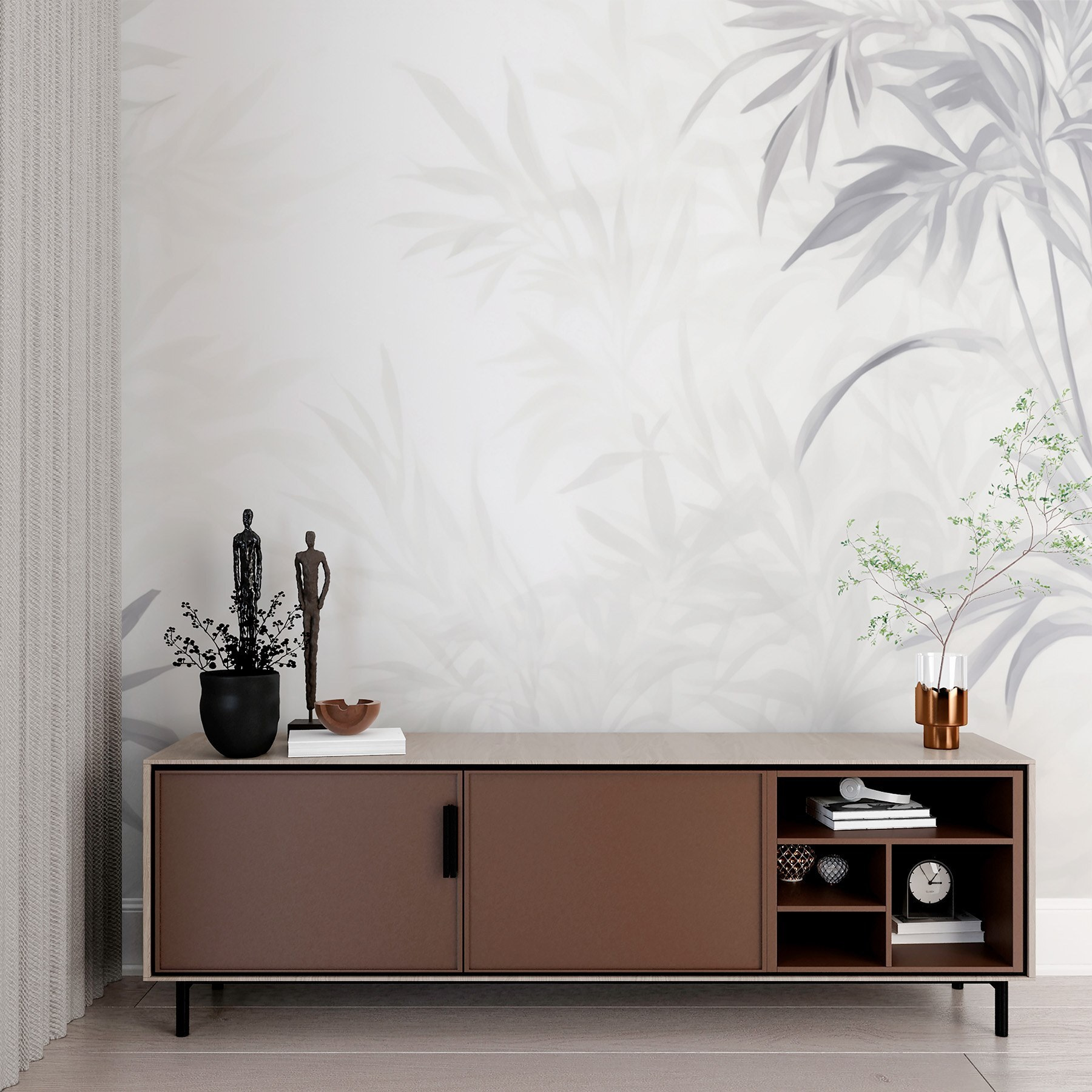 Transforme o seu espaço com este mural de parede encantador que apresenta folhas delicadas num fundo branco sereno. É como trazer um pouco da natureza para dentro de casa sem a confusão – sem insectos ou sujidade, apenas pura tranquilidade. Imagine bebericar o seu café da manhã, sentindo-se como se estivesse numa suave clareira da floresta, mesmo que esteja preso na cidade. O efeito suave de aguarela confere um ambiente de sonho, perfeito para criar um recanto acolhedor ou um retiro tranquilo. Além disso, com a sua elegância subtil, combina lindamente com quase todas as decorações – como um bom par de calças de ganga que combina com tudo! Quer fazer uma afirmação? Este mural protege-o.