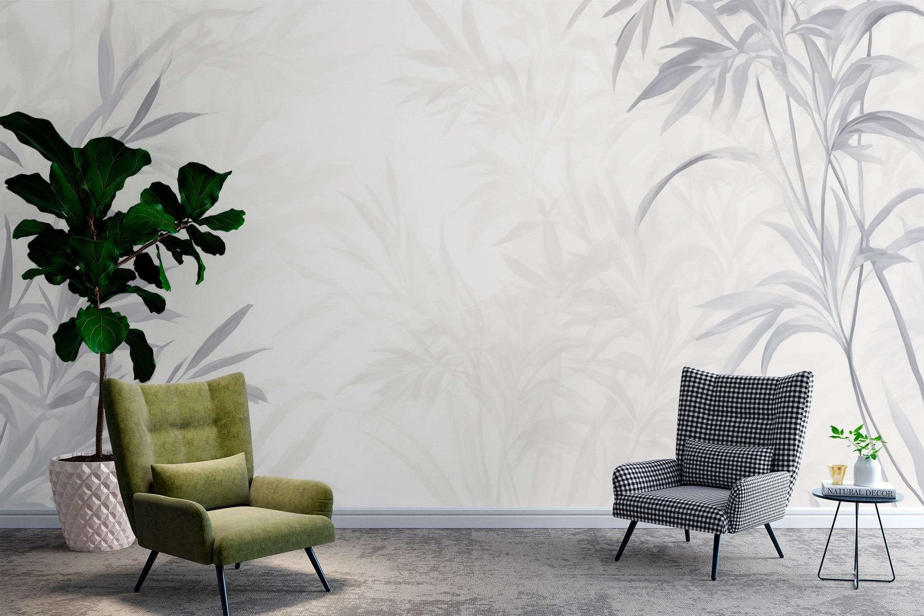 Veja exatamente como ficará o seu espaço com o novo papel de parede antes de comprar. Visualização profissional por designers especializados, sem qualquer custo ou obrigação de compra.