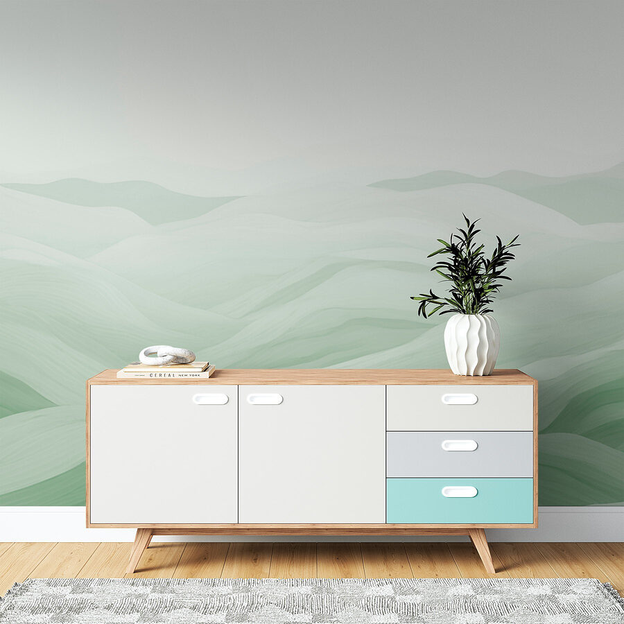 Imagine entrar numa paisagem serena e sonhadora sempre que olha para a sua parede. Este mural, com os seus tons verdes suaves e formas suaves e fluidas, convida a uma vibração pacífica em qualquer divisão. Imagine-o a iluminar um recanto acolhedor ou a servir como um cenário deslumbrante para o seu pequeno canto de leitura. O efeito subtil de aguarela acrescenta um toque de capricho, dando-lhe a sensação de um jardim secreto ou de uma manhã enevoada. É como trazer uma fatia da natureza para dentro de casa – perfeito para aqueles dias em que perseguir o pôr do sol lá fora não é uma opção. Perfeitamente discreto, mas tão cativante!