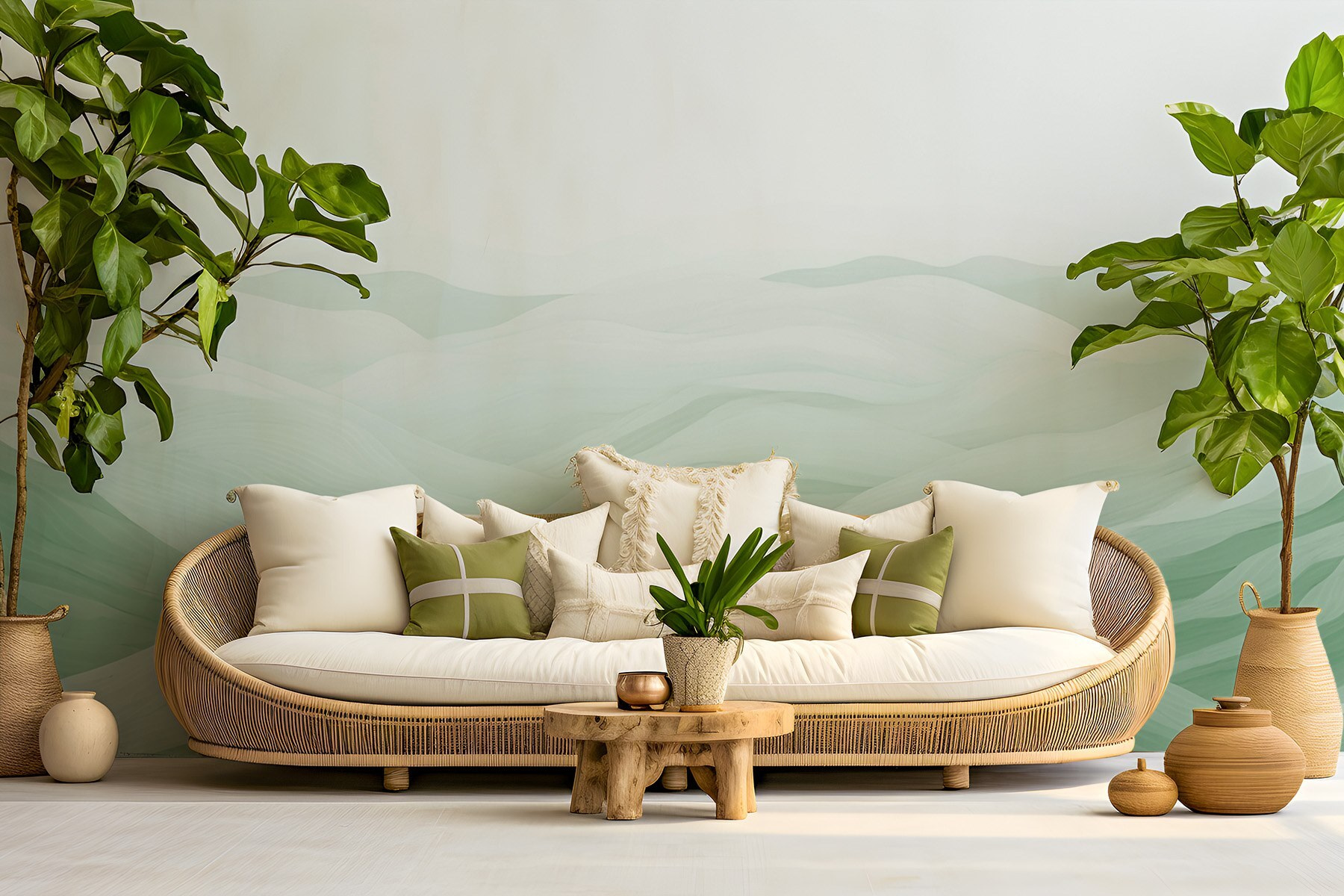 Imagine entrar numa paisagem serena e sonhadora sempre que olha para a sua parede. Este mural, com os seus tons verdes suaves e formas suaves e fluidas, convida a uma vibração pacífica em qualquer divisão. Imagine-o a iluminar um recanto acolhedor ou a servir como um cenário deslumbrante para o seu pequeno canto de leitura. O efeito subtil de aguarela acrescenta um toque de capricho, dando-lhe a sensação de um jardim secreto ou de uma manhã enevoada. É como trazer uma fatia da natureza para dentro de casa – perfeito para aqueles dias em que perseguir o pôr do sol lá fora não é uma opção. Perfeitamente discreto, mas tão cativante!