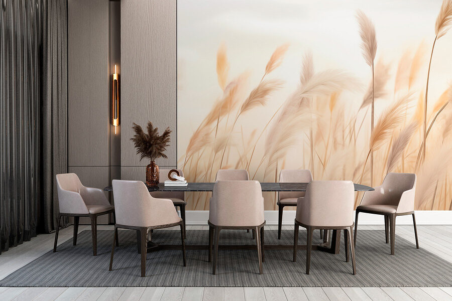 Imagine entrar num prado suave, onde as ervas macias balançam preguiçosamente ao sabor da brisa. É essa a vibração que este mural de parede traz para o seu espaço! Com os seus tons sonhadores e suaves, parece um sussurro da natureza, perfeito para fazer com que qualquer divisão se sinta calma e acolhedora.