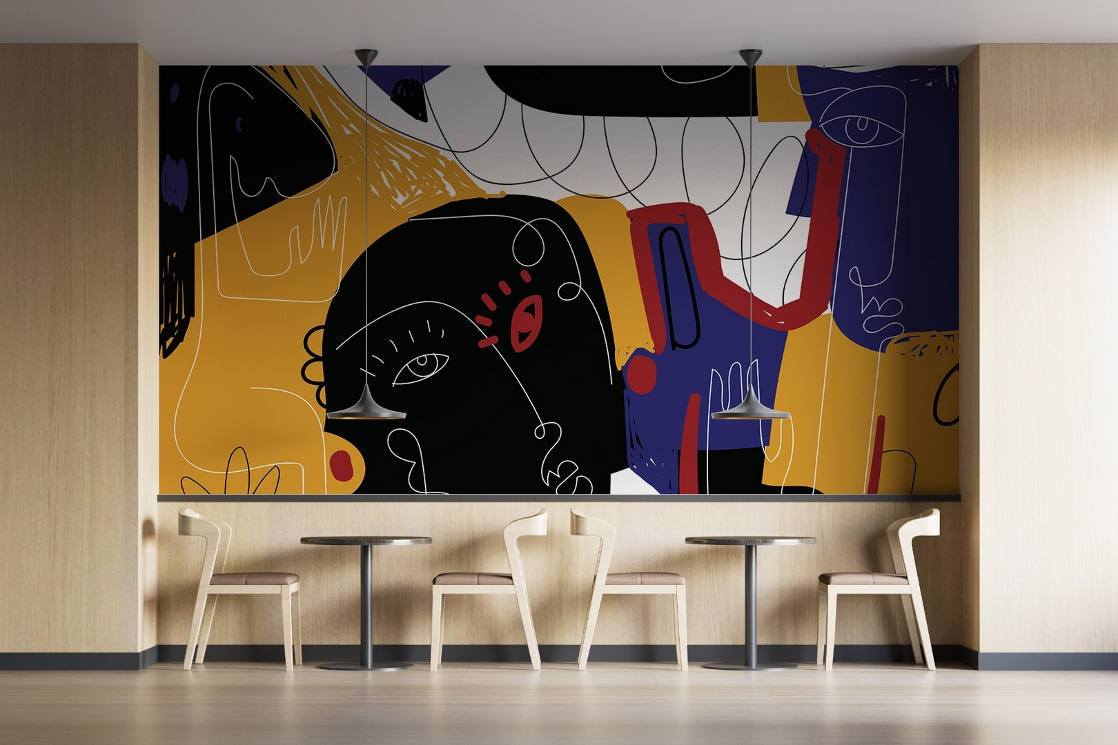 Ilumine qualquer parede com este mural cativante, com arte colorida que mostra rostos intrigantes a preto e azul. Imagine entrar numa sala onde cada olhar revela uma nova emoção ou história à espera de ser contada. É como um início de conversa, mas com tinta em vez de conversa fiada – perfeito para aquele silêncio estranho na sua próxima reunião. A combinação de cores arrojadas e linhas peculiares dá vida a espaços sem graça, tornando difícil não sorrir sempre que passa por eles. Quer seja numa sala de estar acolhedora ou num café vibrante, este mural irradia energia e criatividade. Não se trata apenas de decoração; é uma experiência!