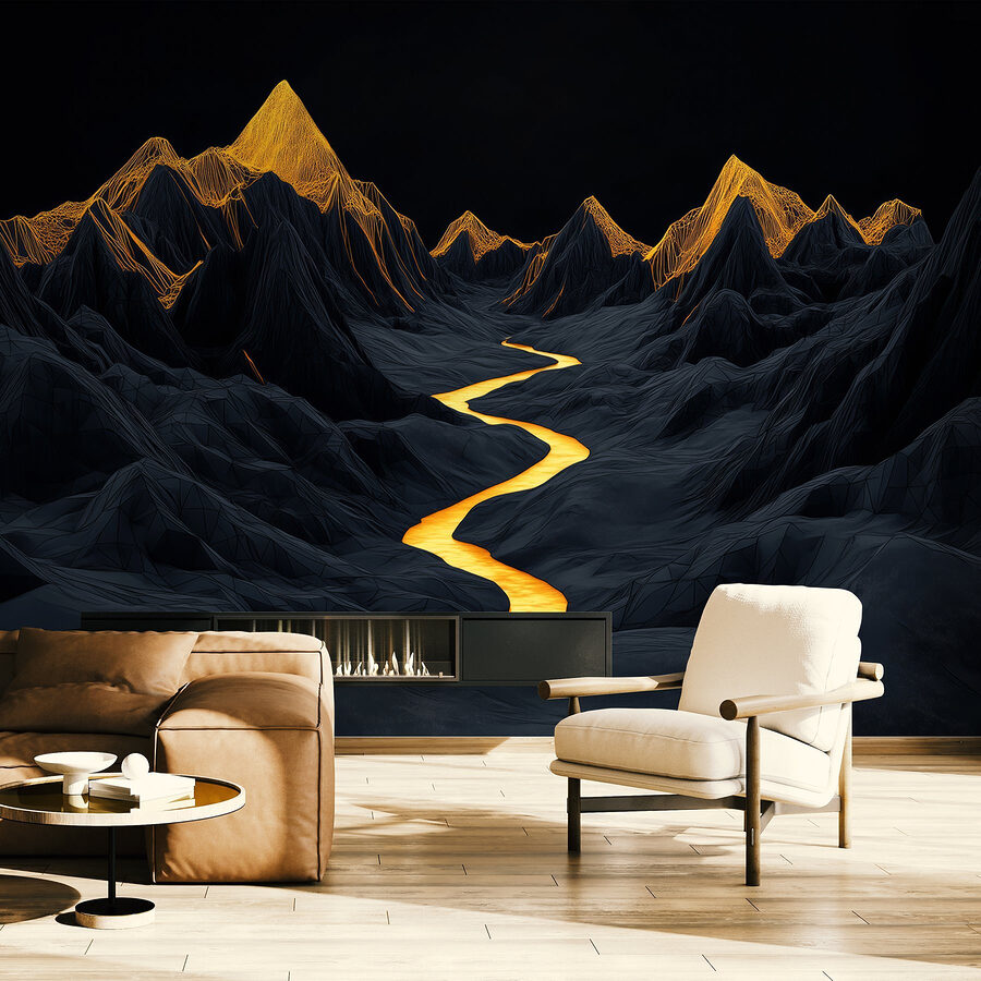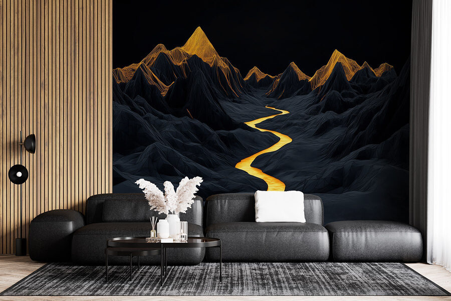 Transforme qualquer espaço numa fuga serena com este mural deslumbrante que representa um rio a serpentear por entre montanhas majestosas. Imagine-se a beber uma bebida quente enquanto contempla o rio dourado a brilhar contra picos escuros e dramáticos – é como trazer a natureza diretamente para a sua sala de estar. Perfeito para quem sonha com aventuras ou apenas precisa de um canto calmo para descontrair. Quer seja o ponto focal da sala ou um subtil pano de fundo para a vida quotidiana, este mural acrescenta um toque de natureza ao ar livre sem necessidade de equipamento de caminhada. Imagine só: noites aconchegantes, luz suave e aquela vista deslumbrante todos os dias.